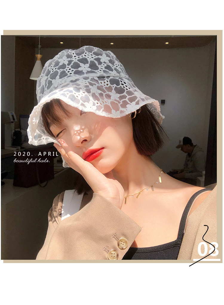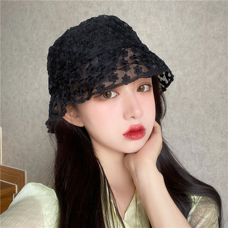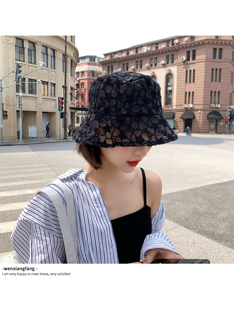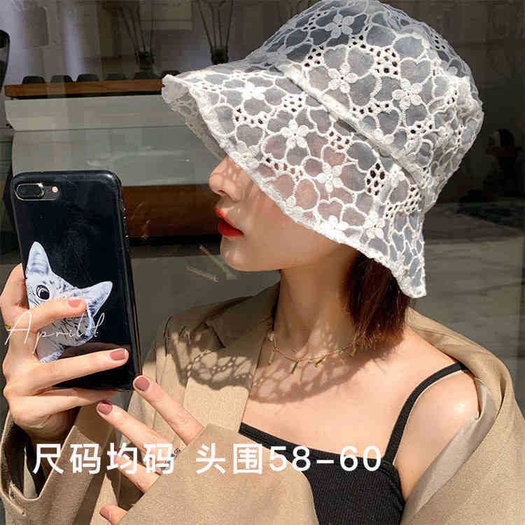 새로운 스타일 모자 여성 한국 스타일 여름 레이스 꽃 어부 모자 패션 올 매치 우아한 양산 중공 분지 모자 트렌디스토어 가기