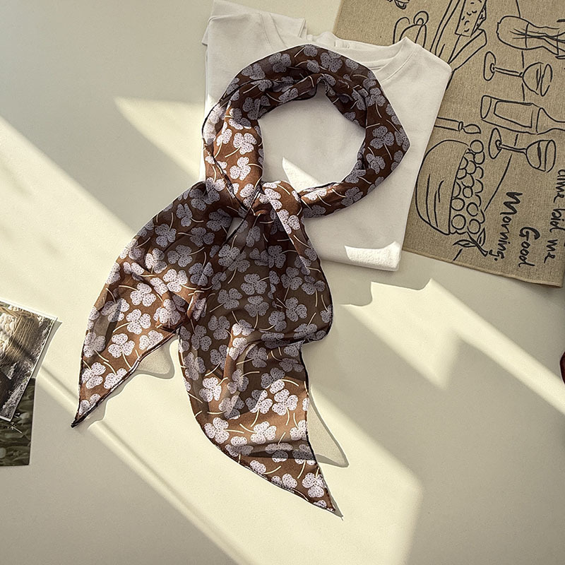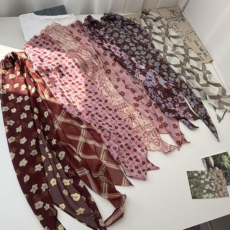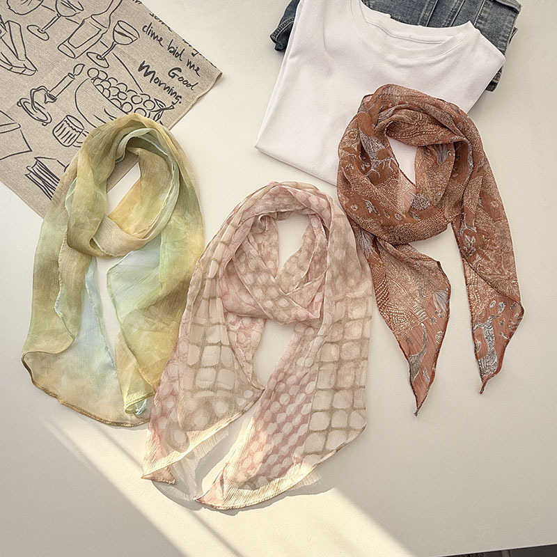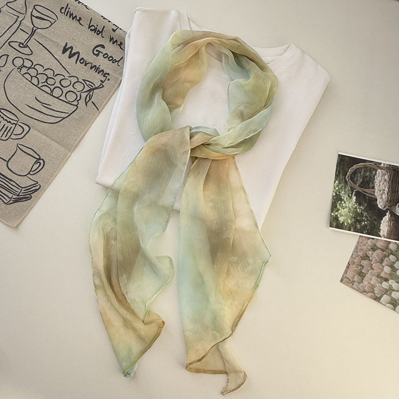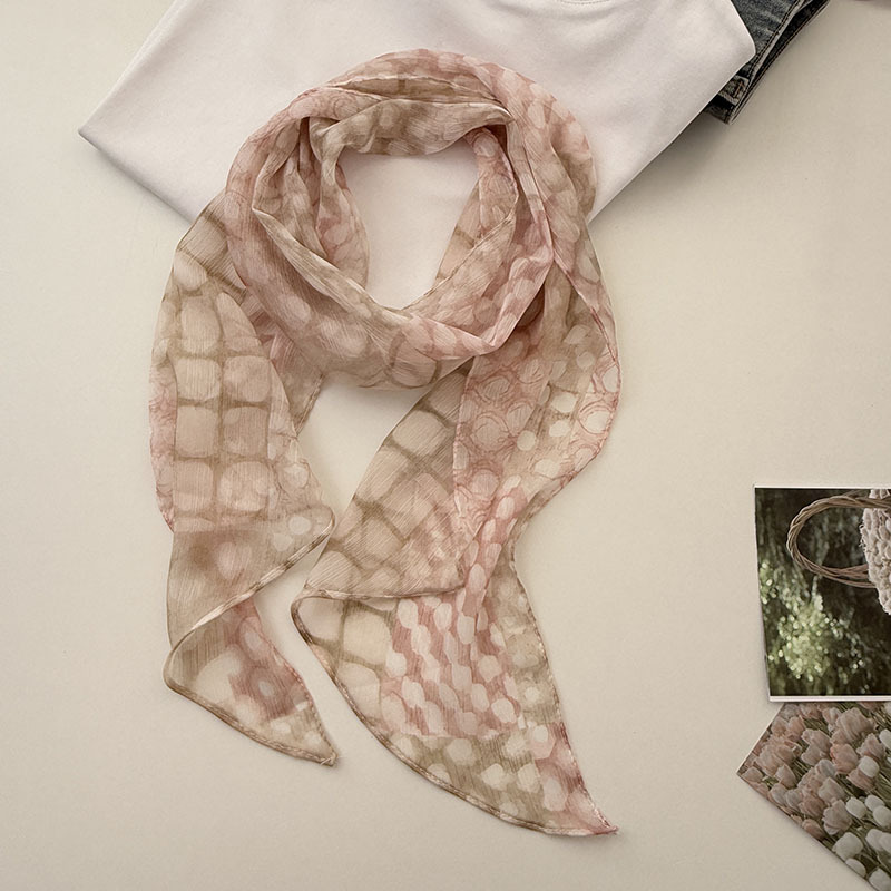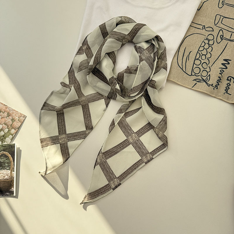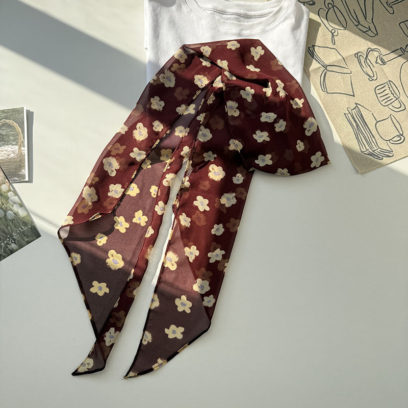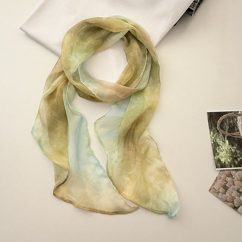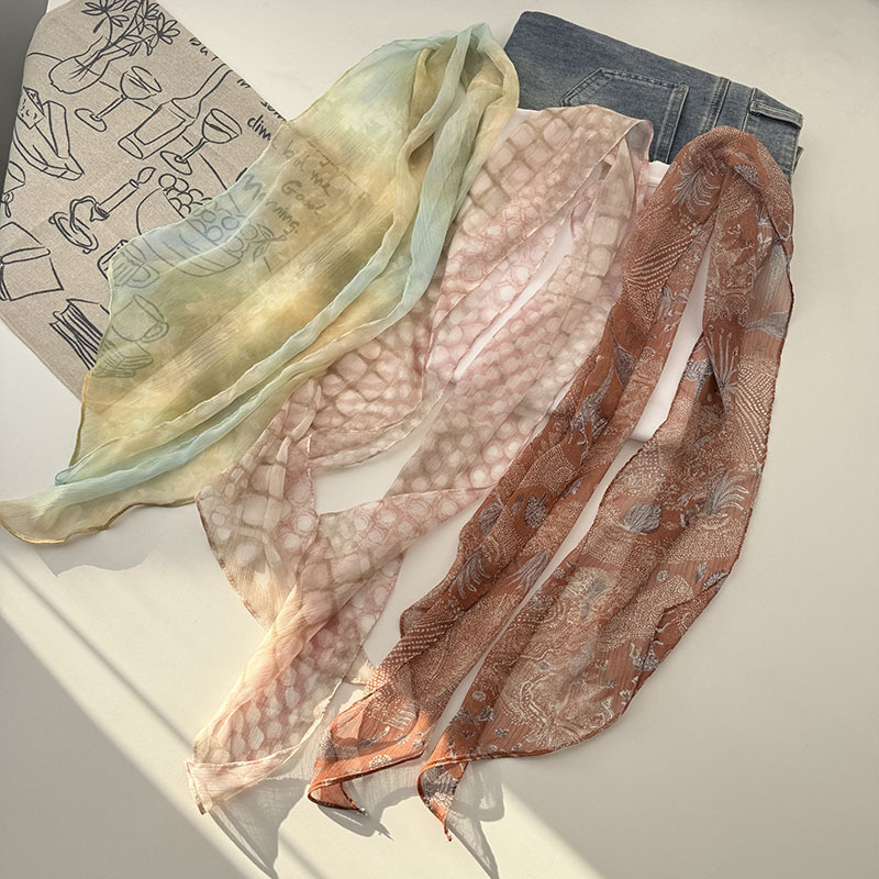 긴 실크 스카프 게으른 휴식 리본 여성의 2025 봄과 가을 새로운 장식 스카프 우아한 헤어 밴드 양면 벨트