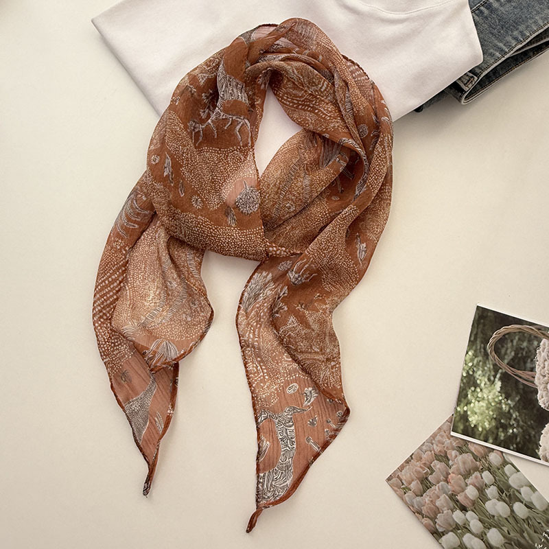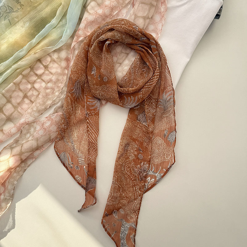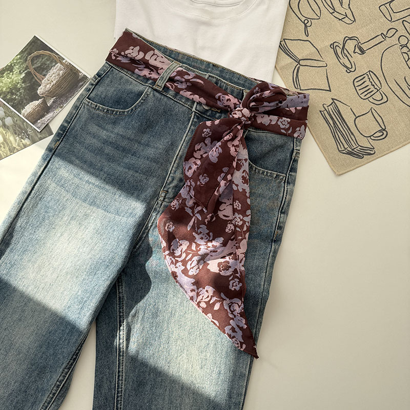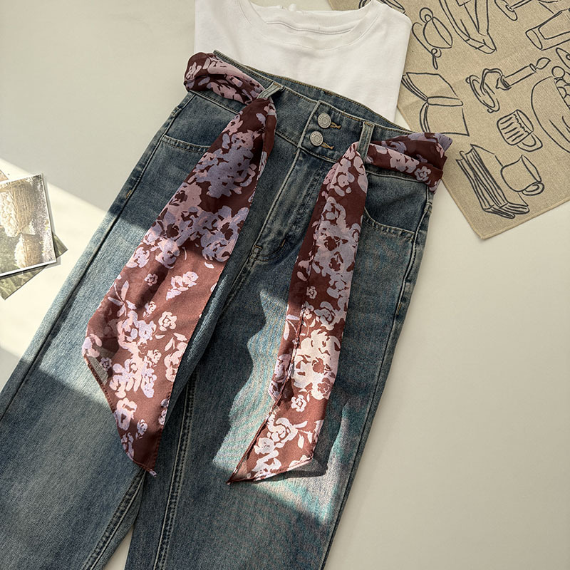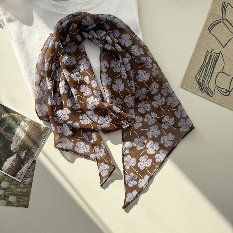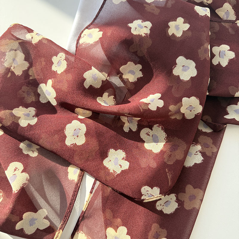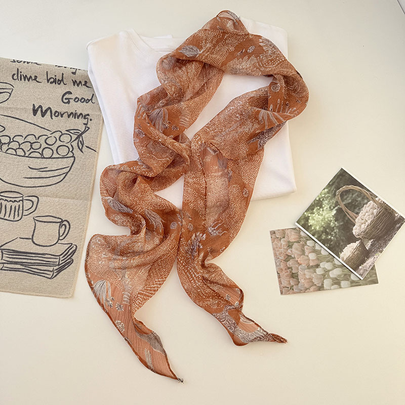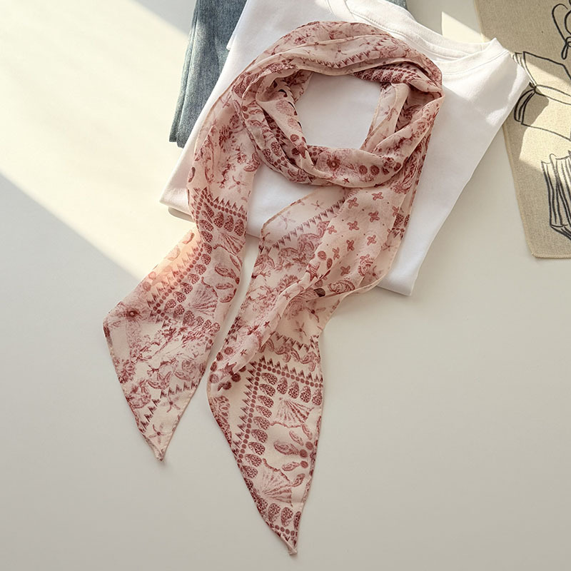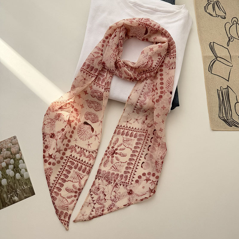 긴 실크 스카프 게으른 휴식 리본 여성의 2025 봄과 가을 새로운 장식 스카프 우아한 헤어 밴드 양면 벨트