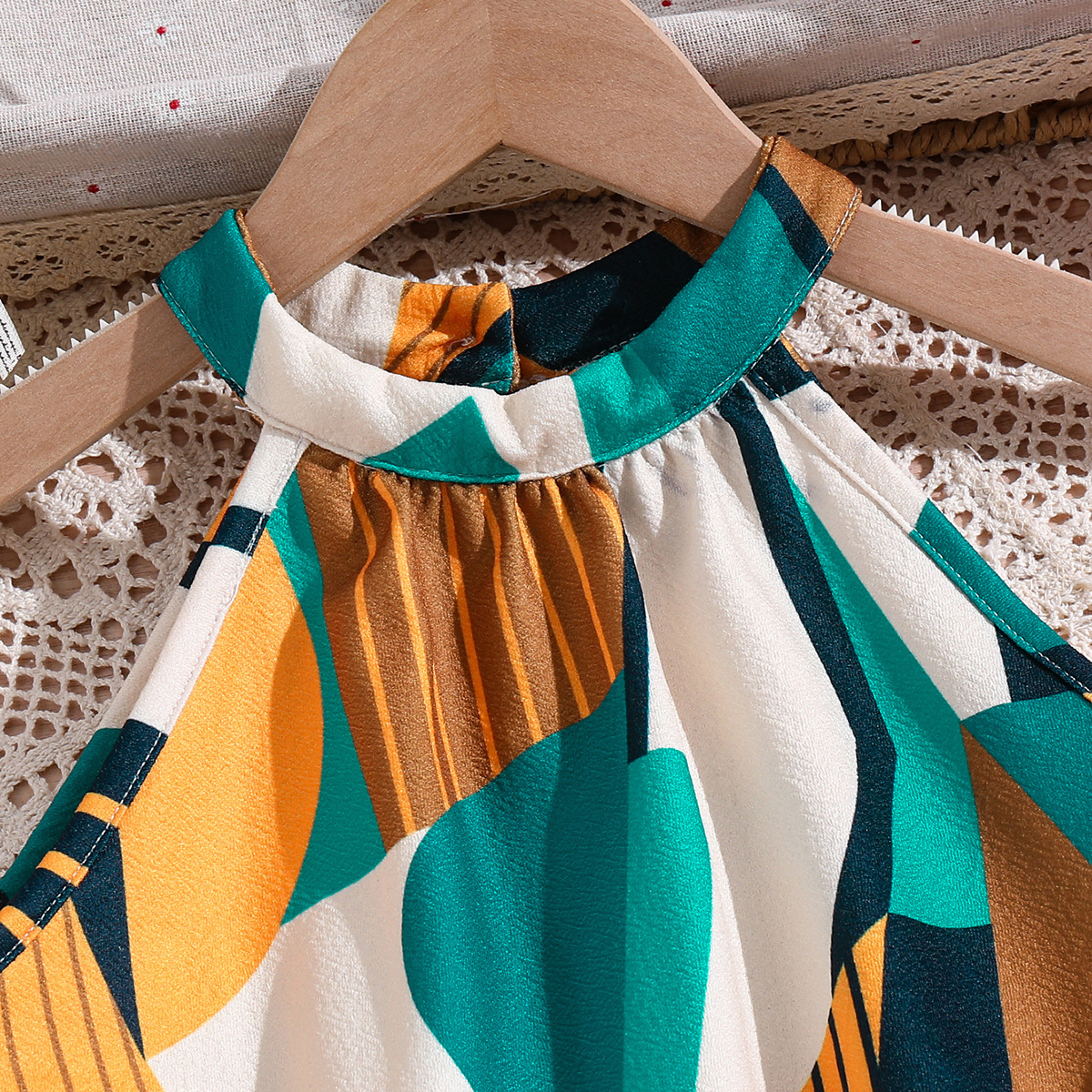 여아 여름 드레스, 인기 있는 홀터넥 스커트, 패셔너블한 프린트 민소매 유럽 및 미국 드레스, 아동 여름 드레스, 새로운 스타일