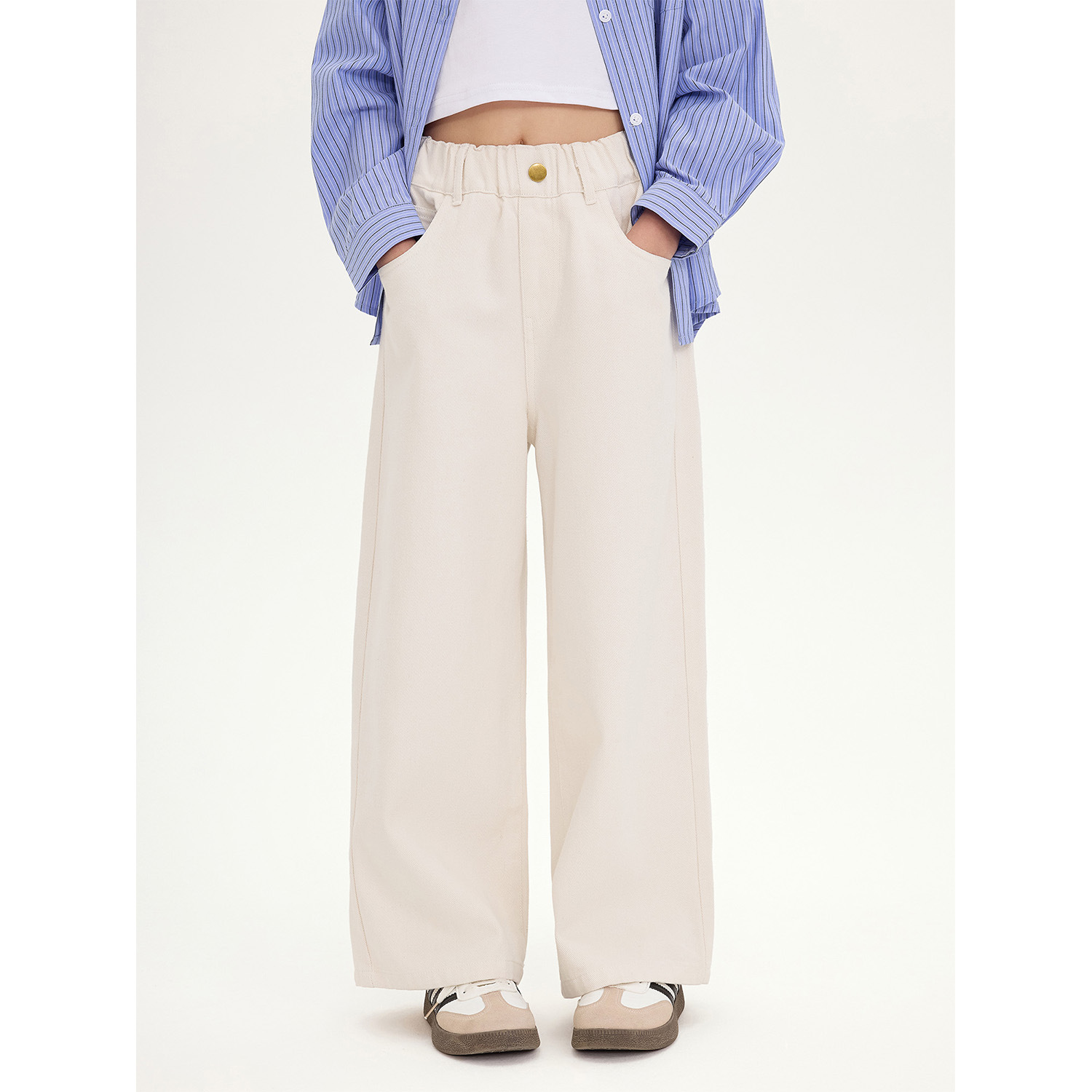 여아 심플 스타일 청바지 2025 가을 신상 단색 캐주얼 다용도 와이드 팬츠 중대형 아동 봄 가을 바지스토어 가기