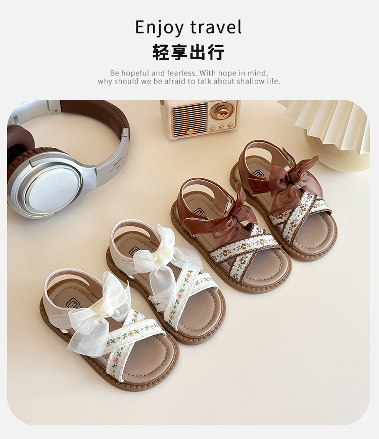 여자 패션 활 샌들 2025 여름 새로운 한국 스타일 어린이 소프트 솔 웨스턴 스타일 벨크로 비치 신발스토어 가기