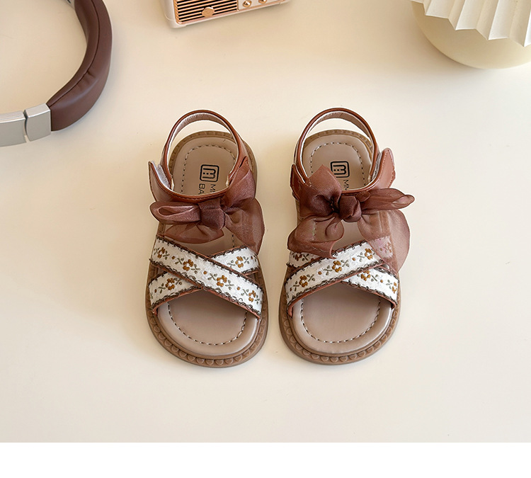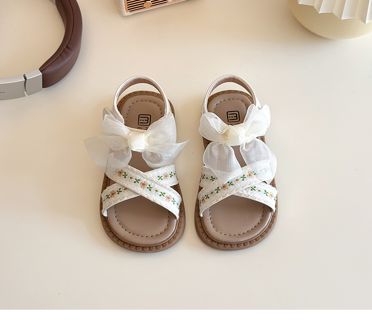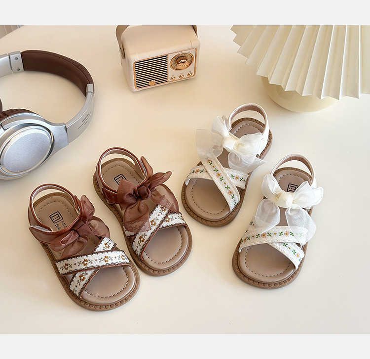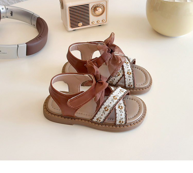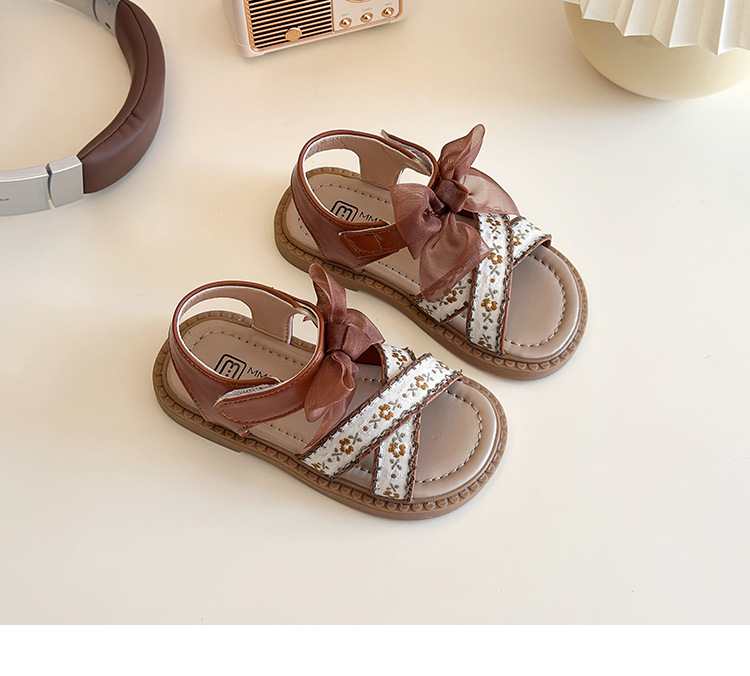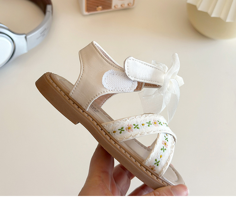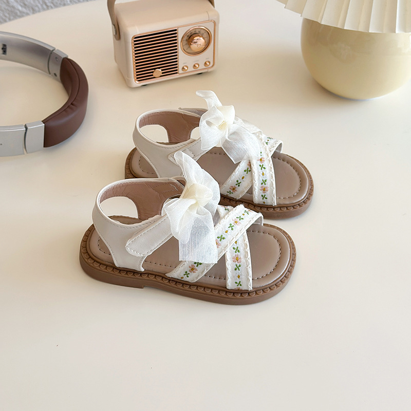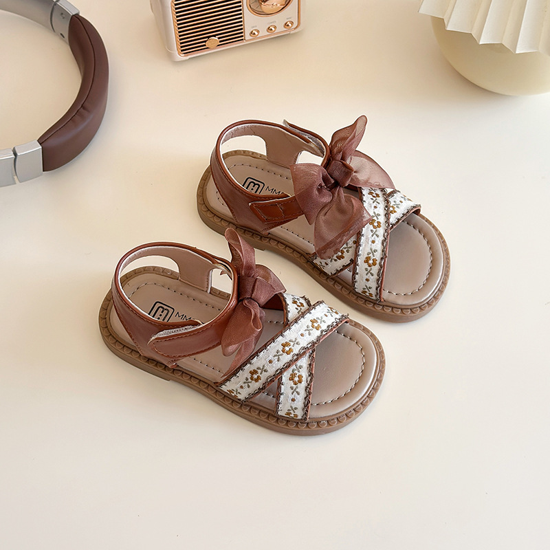 여자 패션 활 샌들 2025 여름 새로운 한국 스타일 어린이 소프트 솔 웨스턴 스타일 벨크로 비치 신발
