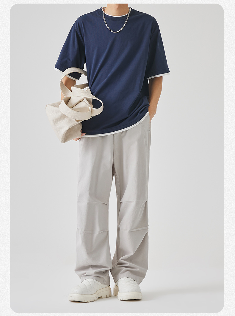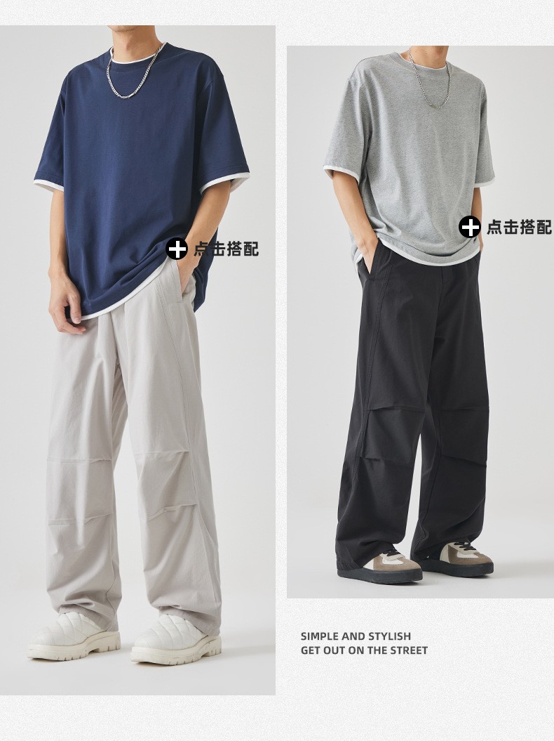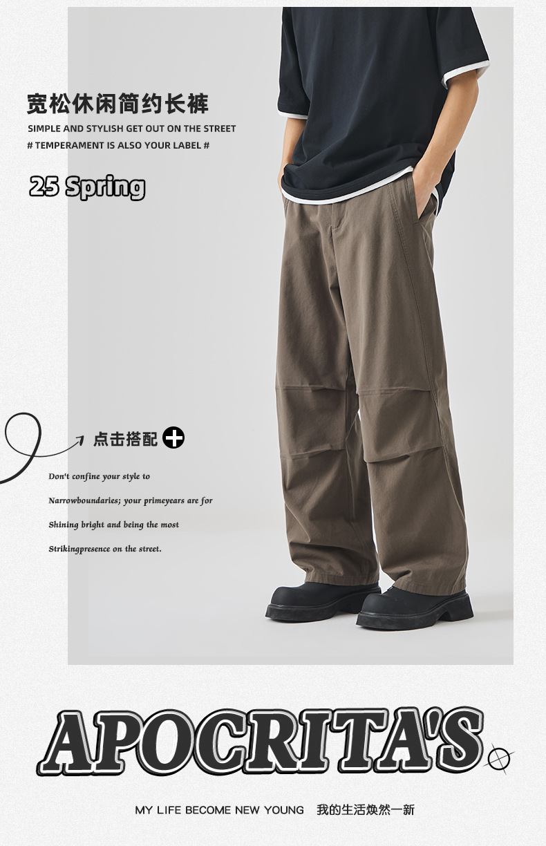 APO 남성 | 미국 툴링 낙하산 바지 남성용 봄 하이 센스 패션 루즈 스트레이트 바지 충전 바지