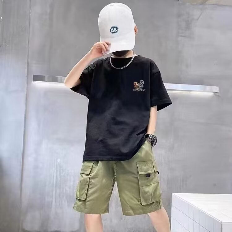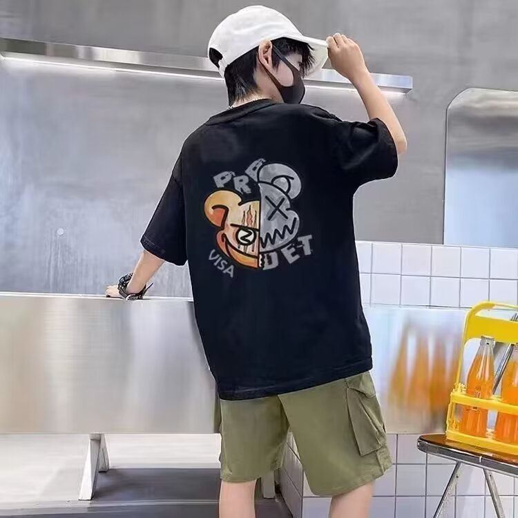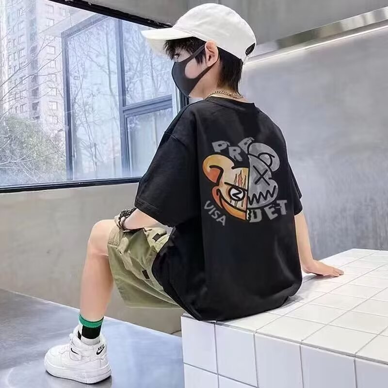 캐주얼 인쇄 2025 라운드 넥 어린이 유행 여름 패션 브랜드 새로운 소년 짧은 소매 탑 티셔츠스토어 가기