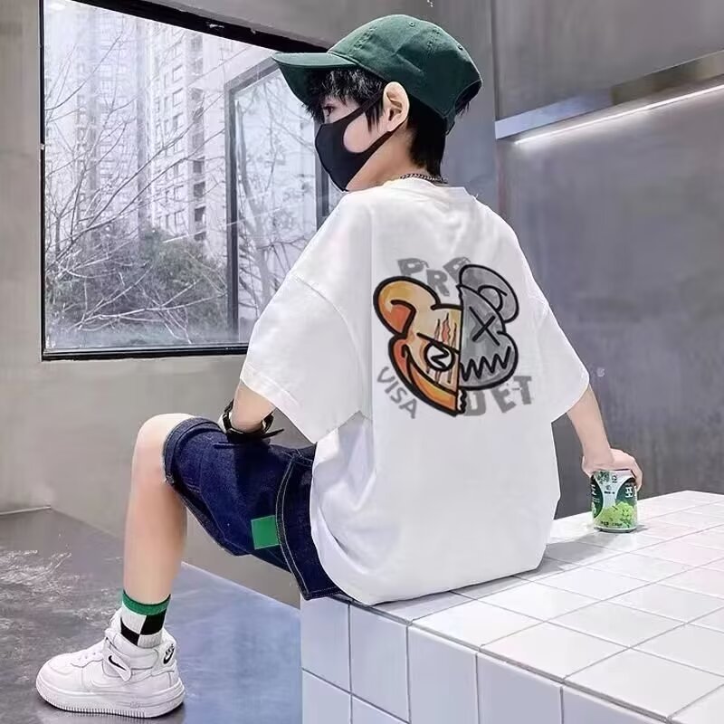 캐주얼 인쇄 2025 라운드 넥 어린이 유행 여름 패션 브랜드 새로운 소년 짧은 소매 탑 티셔츠