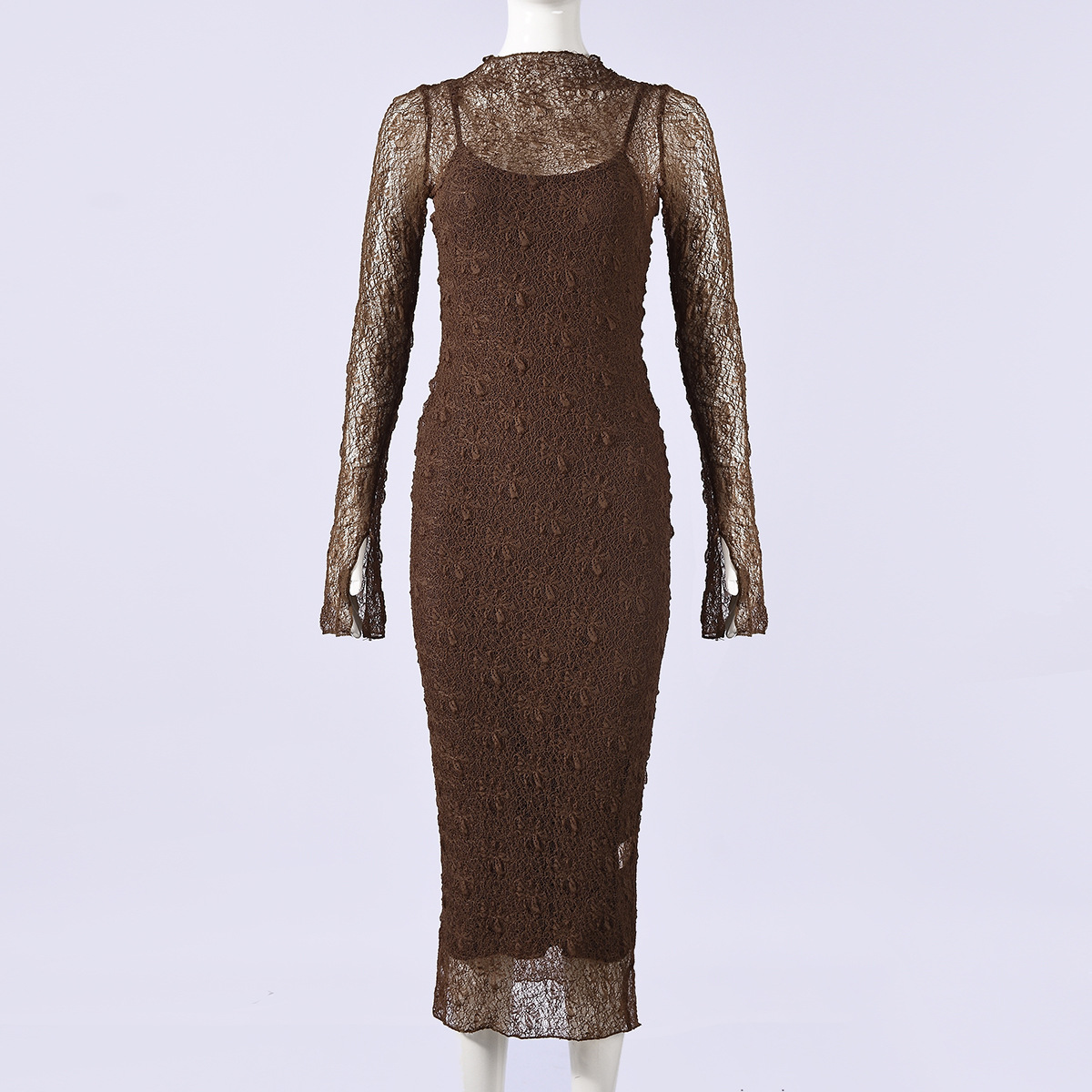 32428SBY 2026년 여름 신상품 섹시 슬림핏 레이스 시스루 유럽풍 긴팔 드레스 여성용 (해외 직배송)스토어 가기