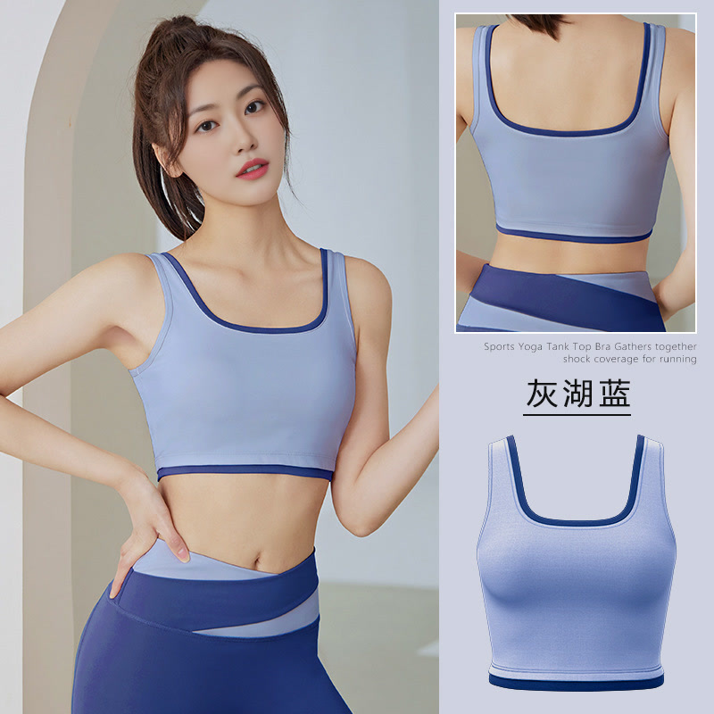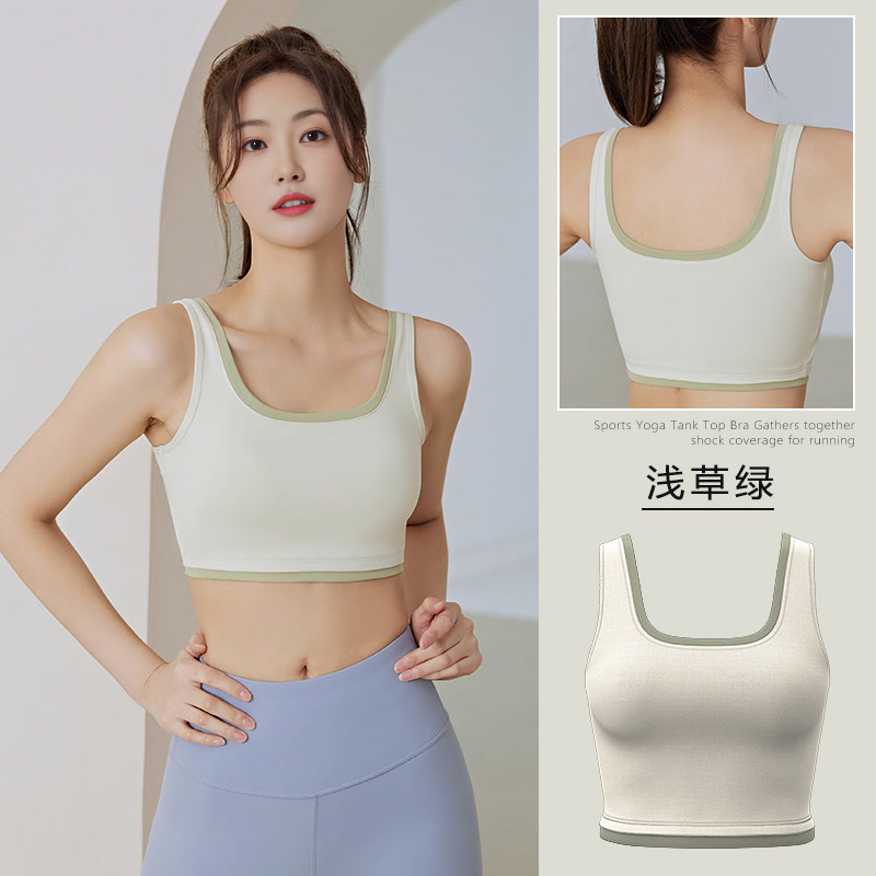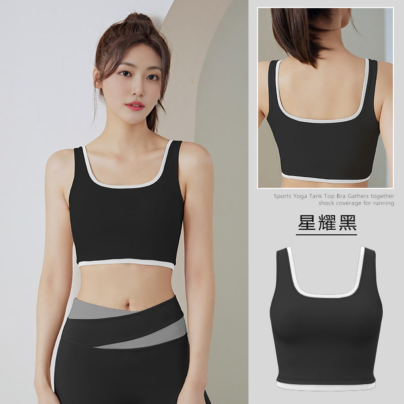 새로운 트리밍 컬러 매칭 스포츠 속옷 고강도 충격 방지 푸시 업 가슴 클리트 야외 스포츠 요가 브래지어