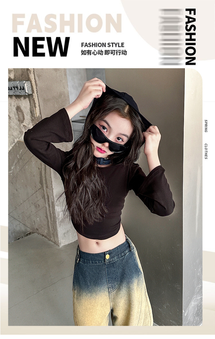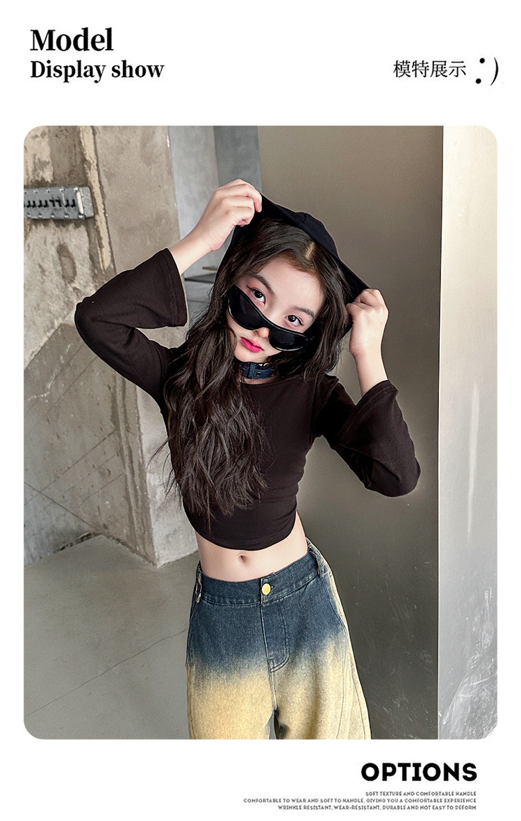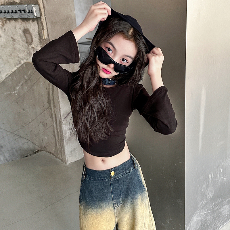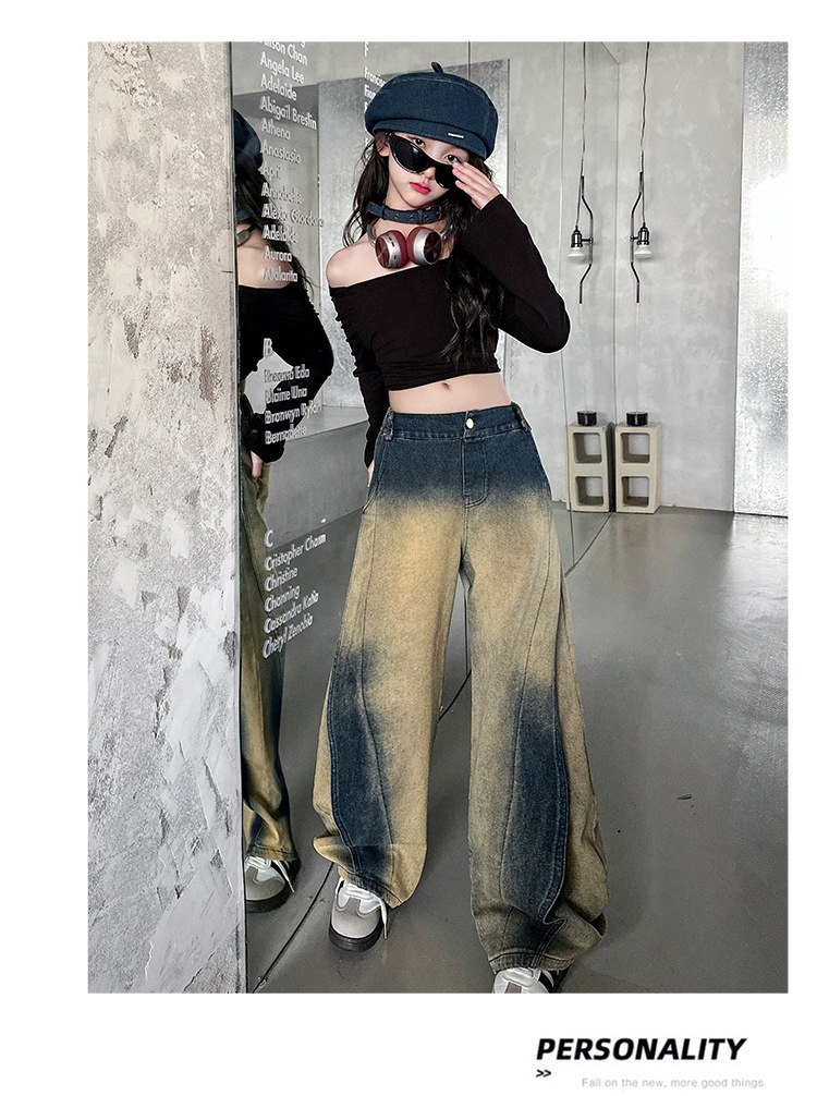 소녀의 봄과 가을 세트 2025 새로운 유행 후드 니트 어깨 스웨터 데님 시미 터 팬츠 트렌디스토어 가기