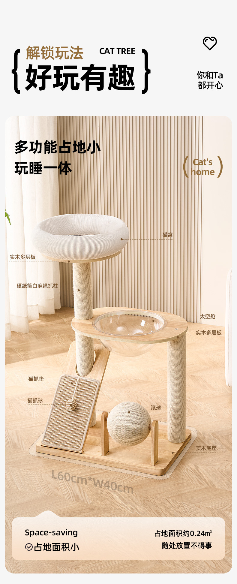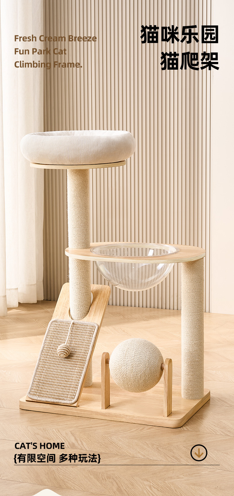 고양이 등반 프레임 고양이 둥지 통합 가정용 비 점유 고양이 등반 프레임 고양이 긁는 보드 공간 캡슐 고양이 긁는 포스트 국경 대외 무역 모델스토어 가기