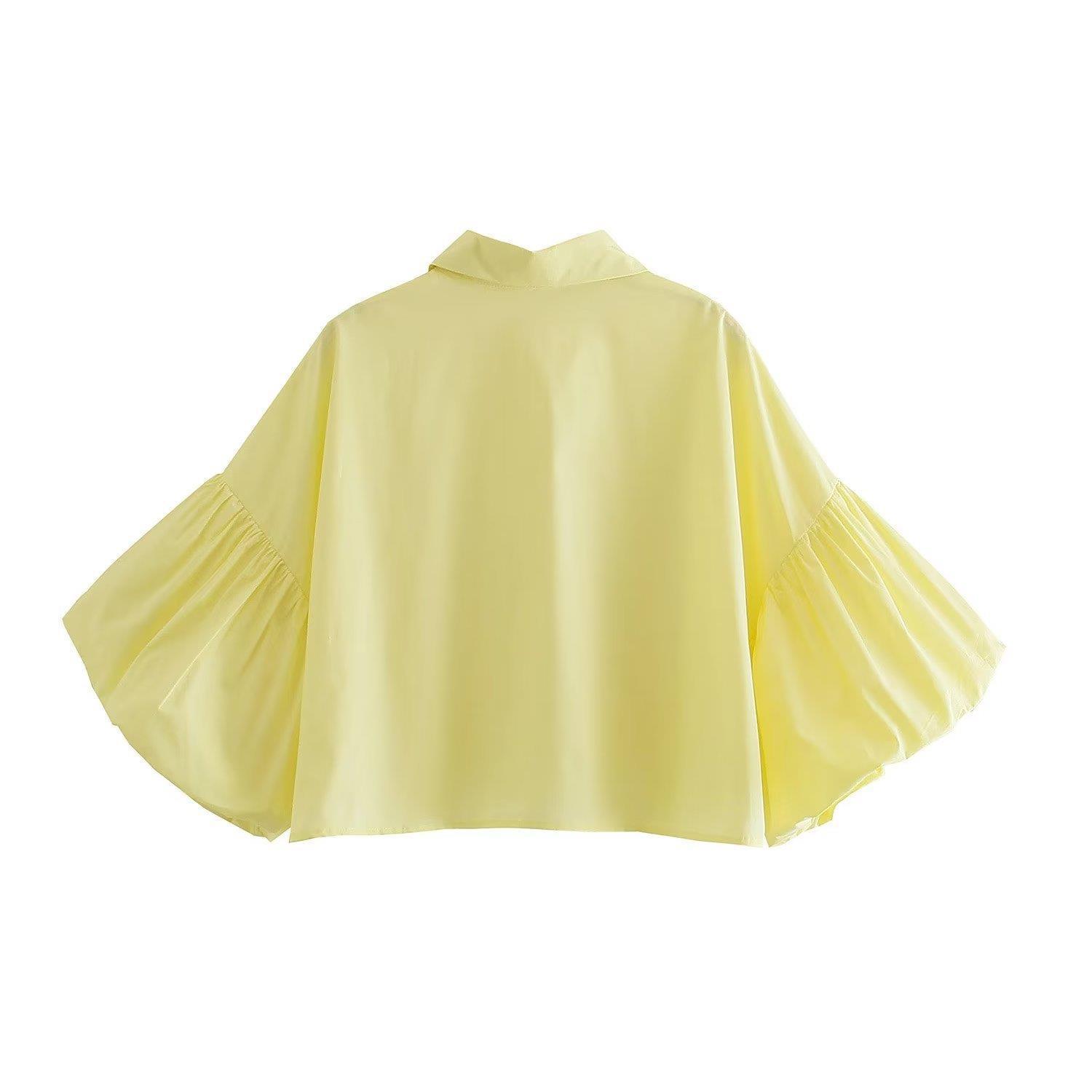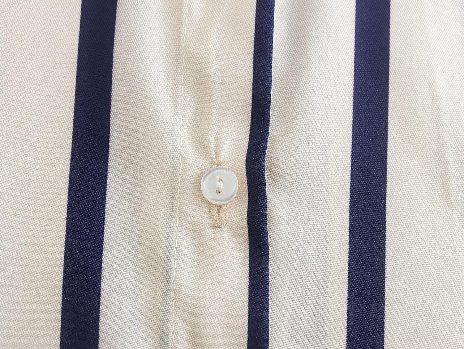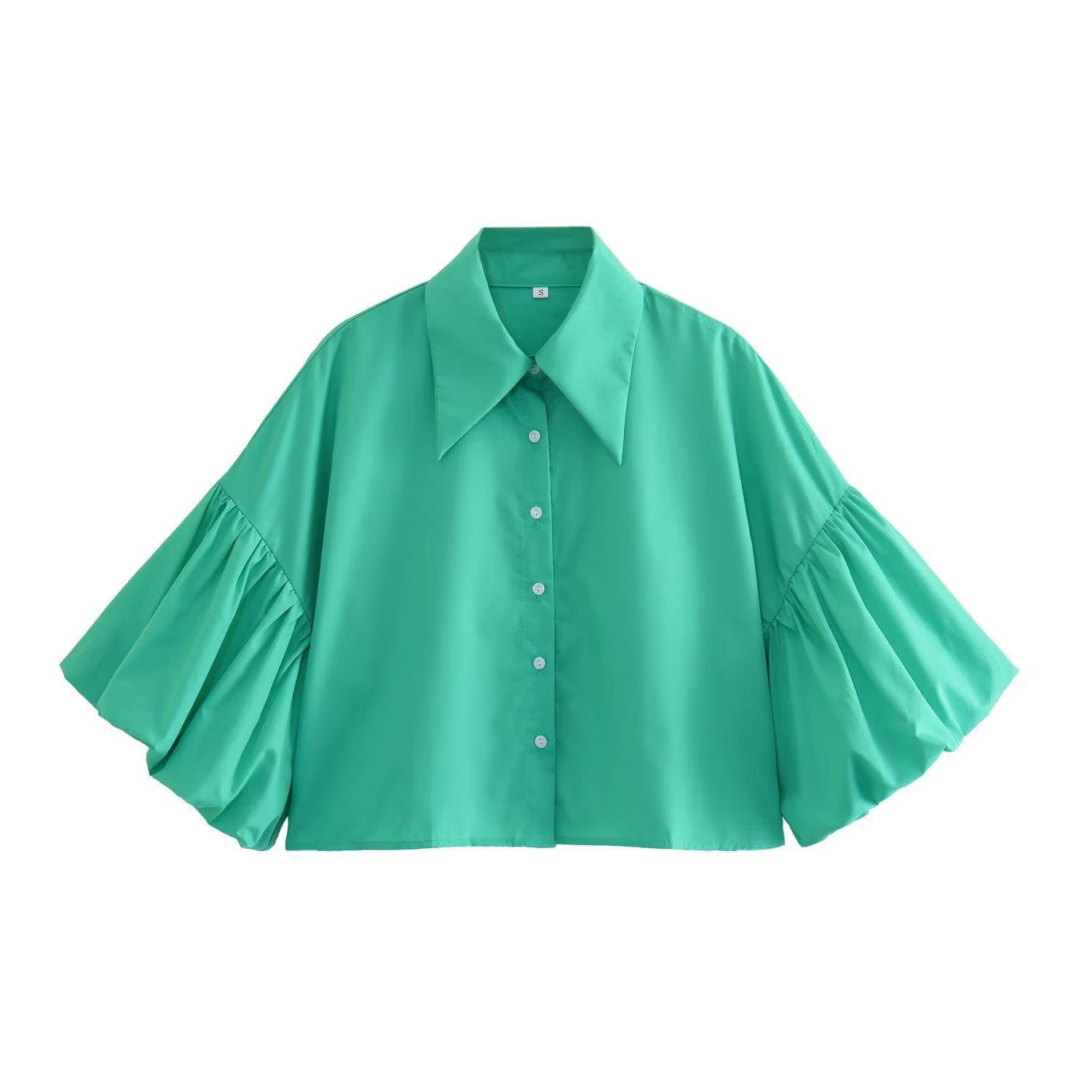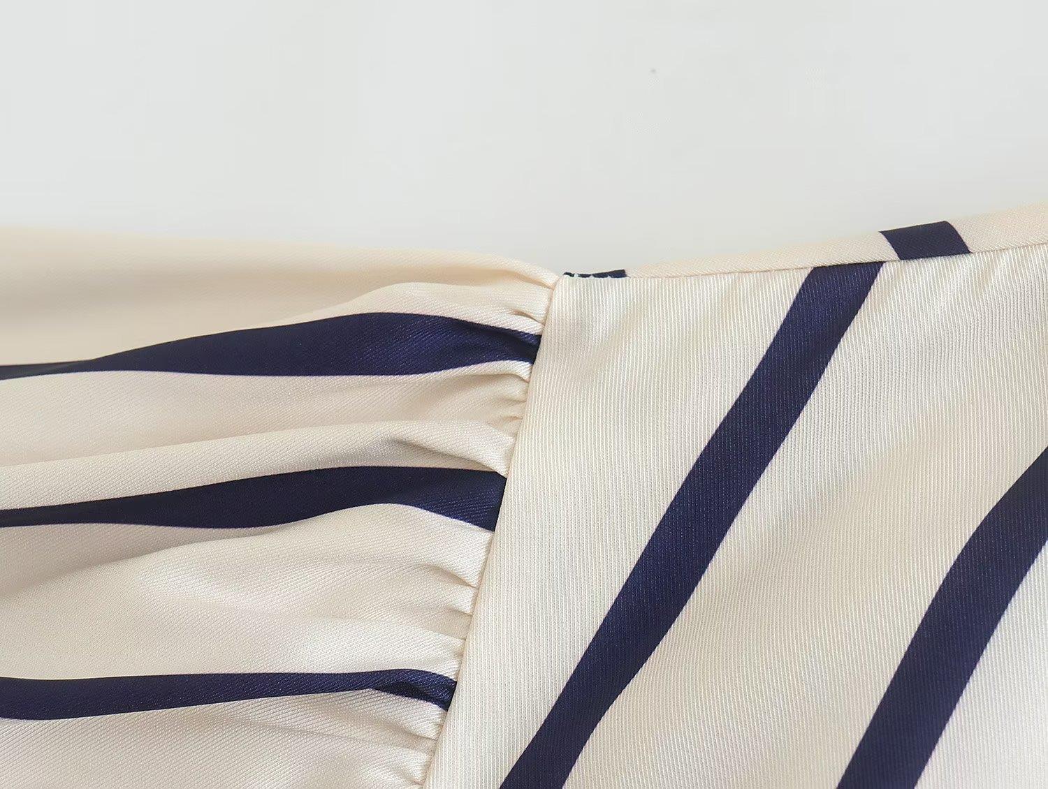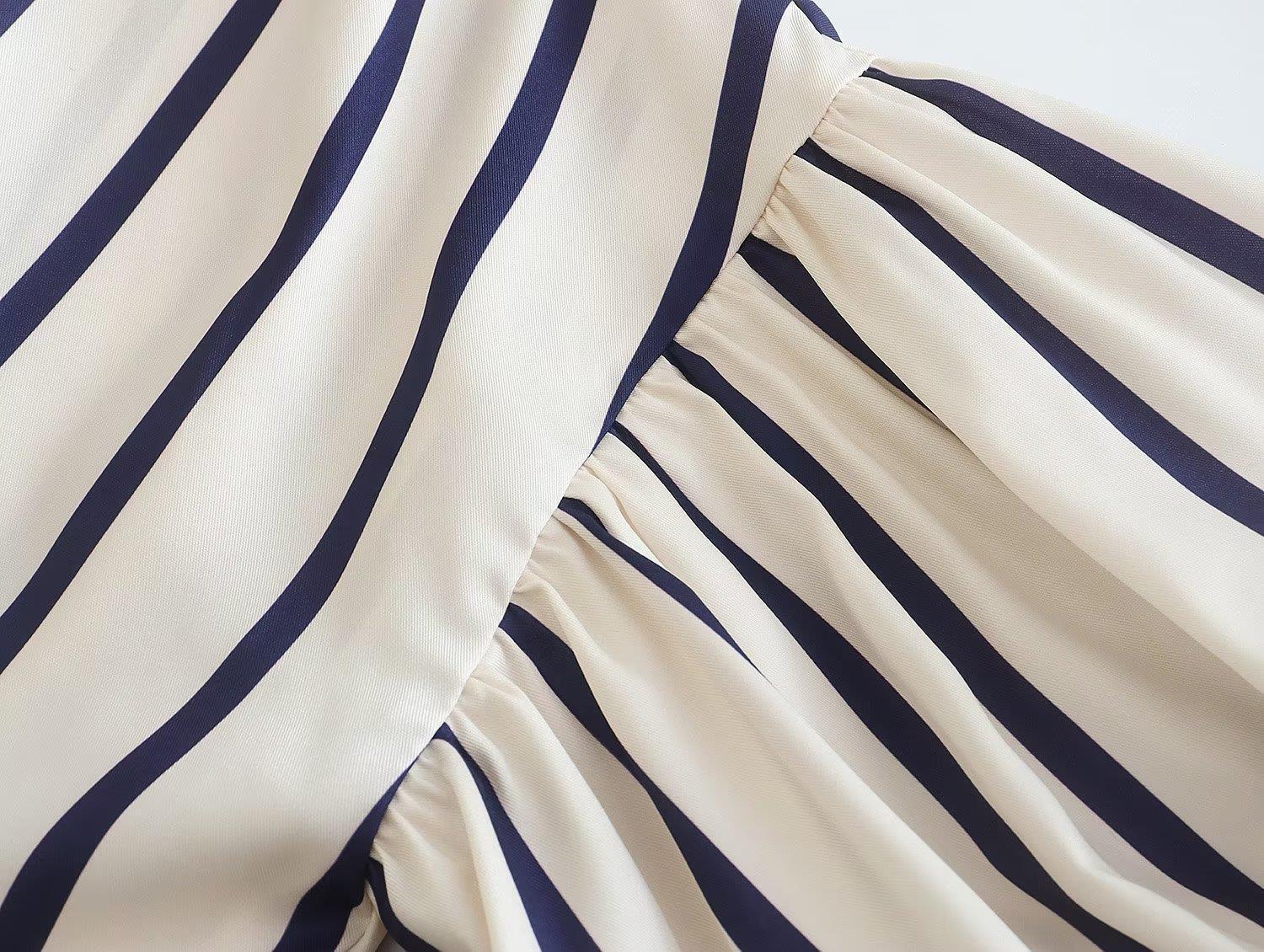 대외 무역 목록! 여성의 봄 새로운 느슨한 캐주얼 줄무늬 랜턴 소매 짧은 셔츠 여성용 탑