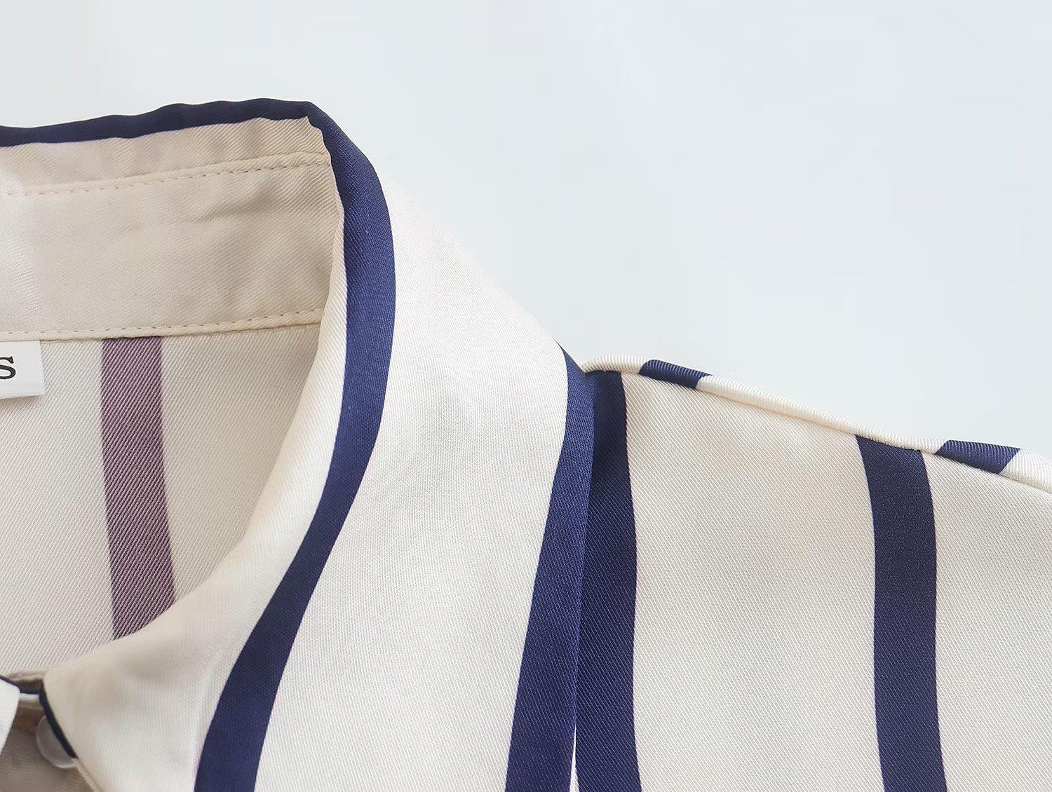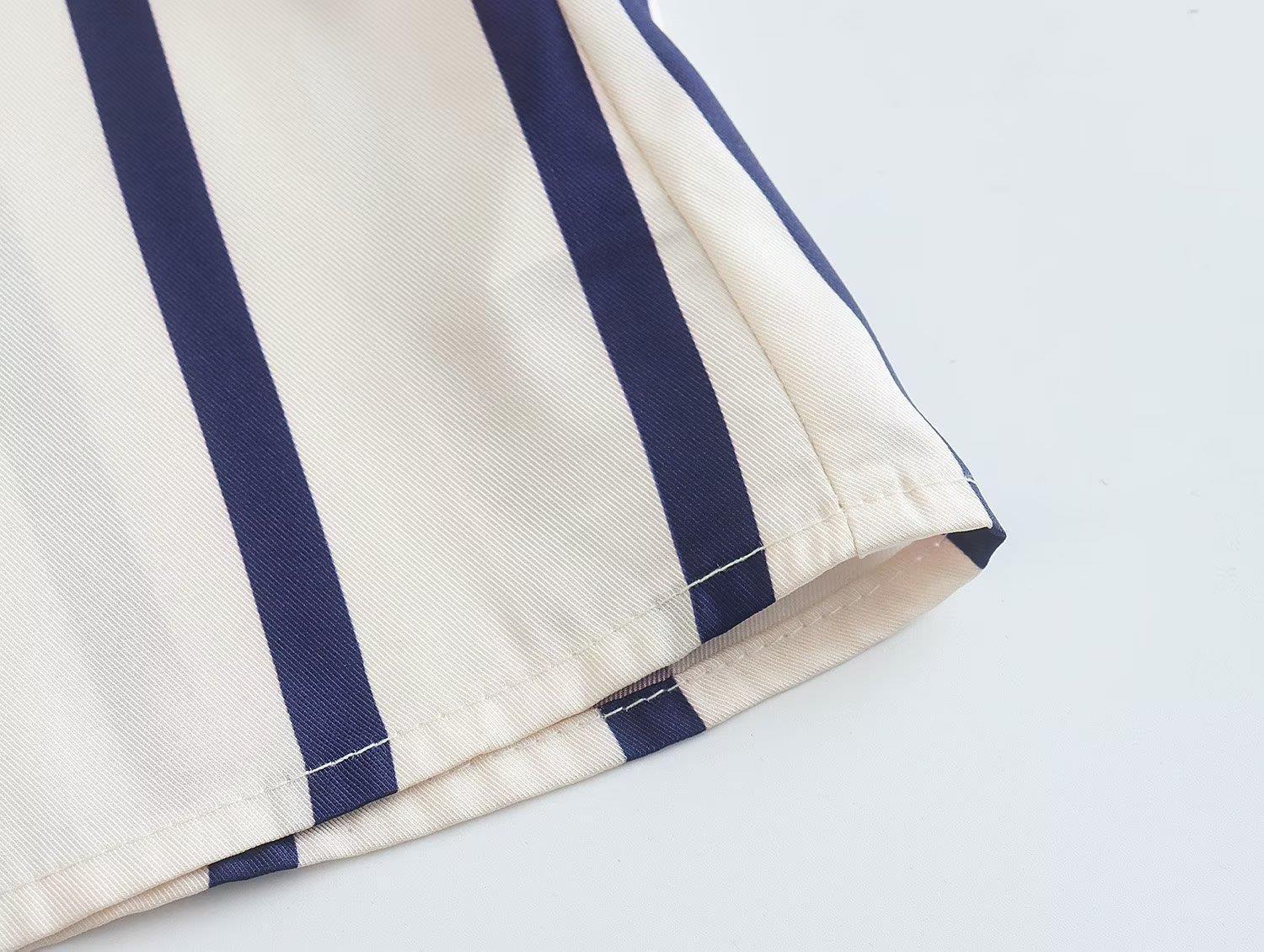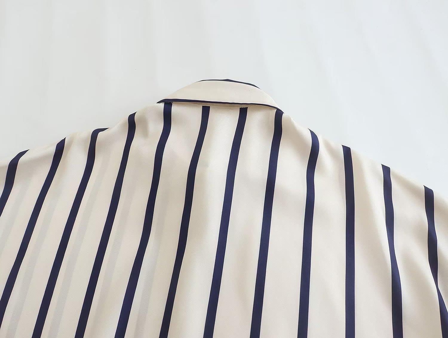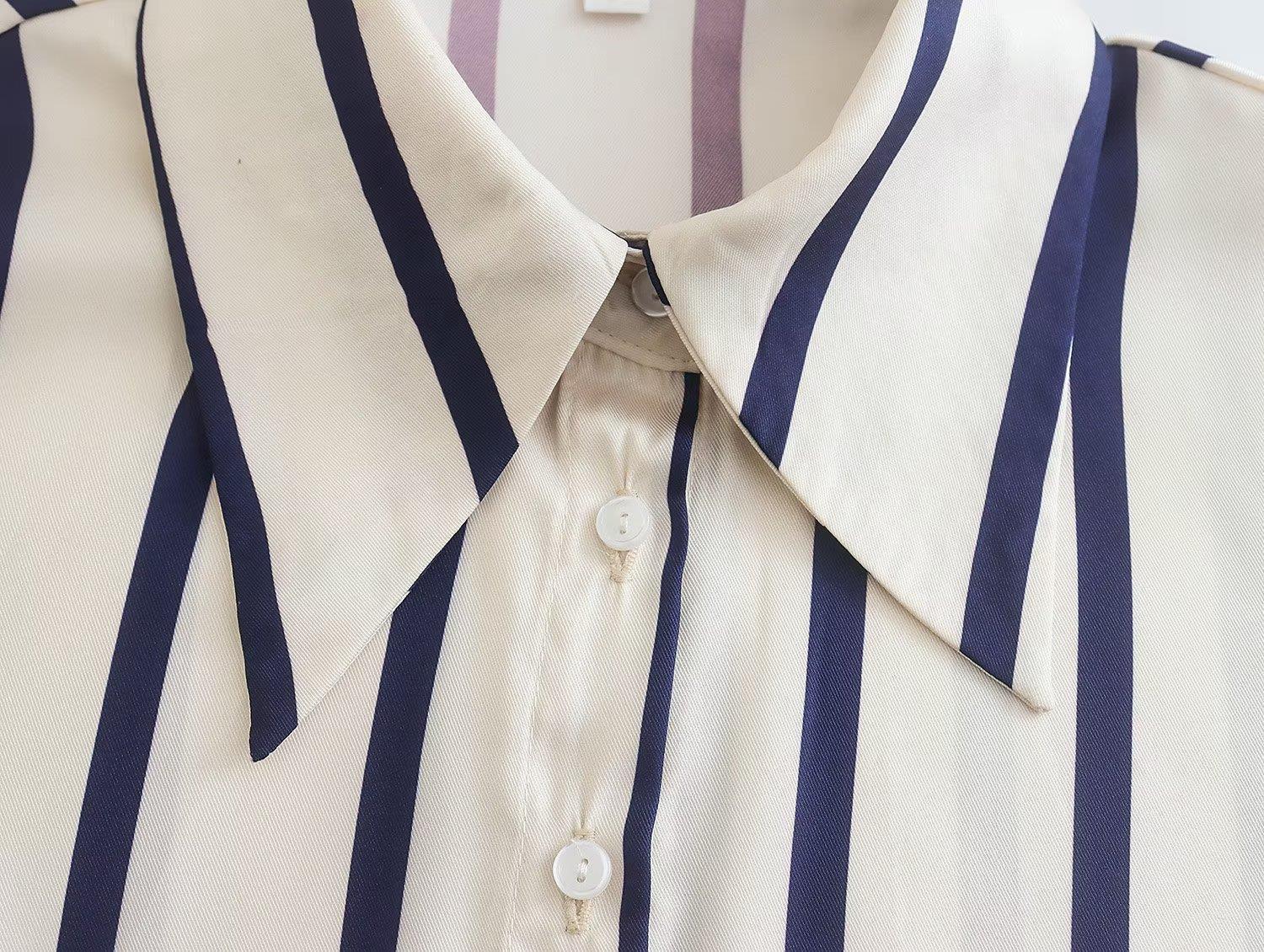 대외 무역 목록! 여성의 봄 새로운 느슨한 캐주얼 줄무늬 랜턴 소매 짧은 셔츠 여성용 탑스토어 가기