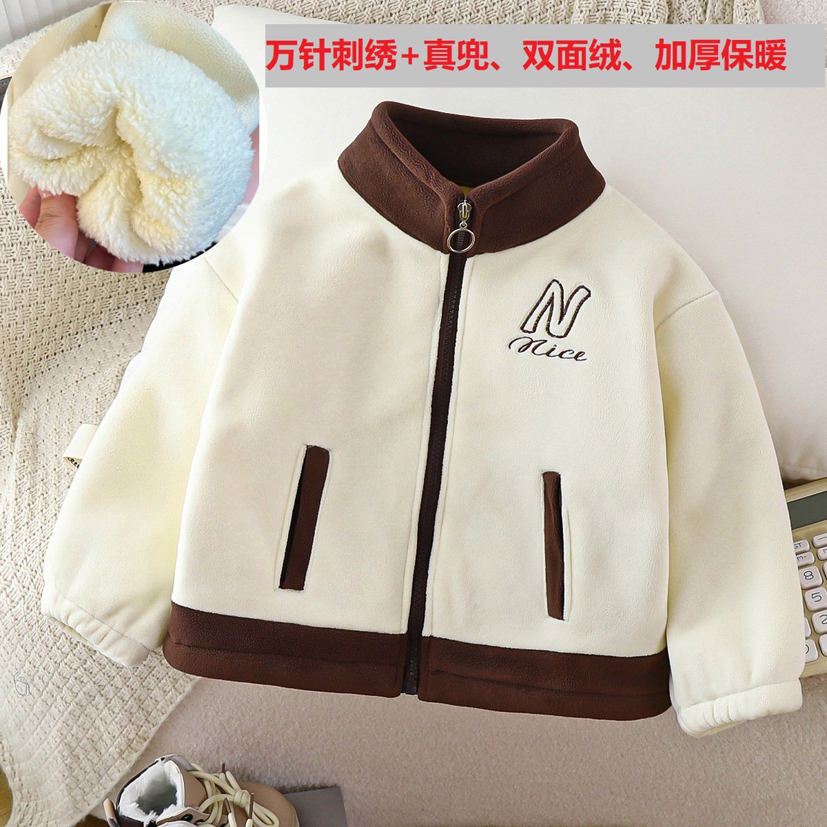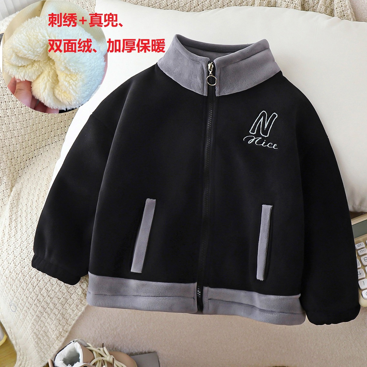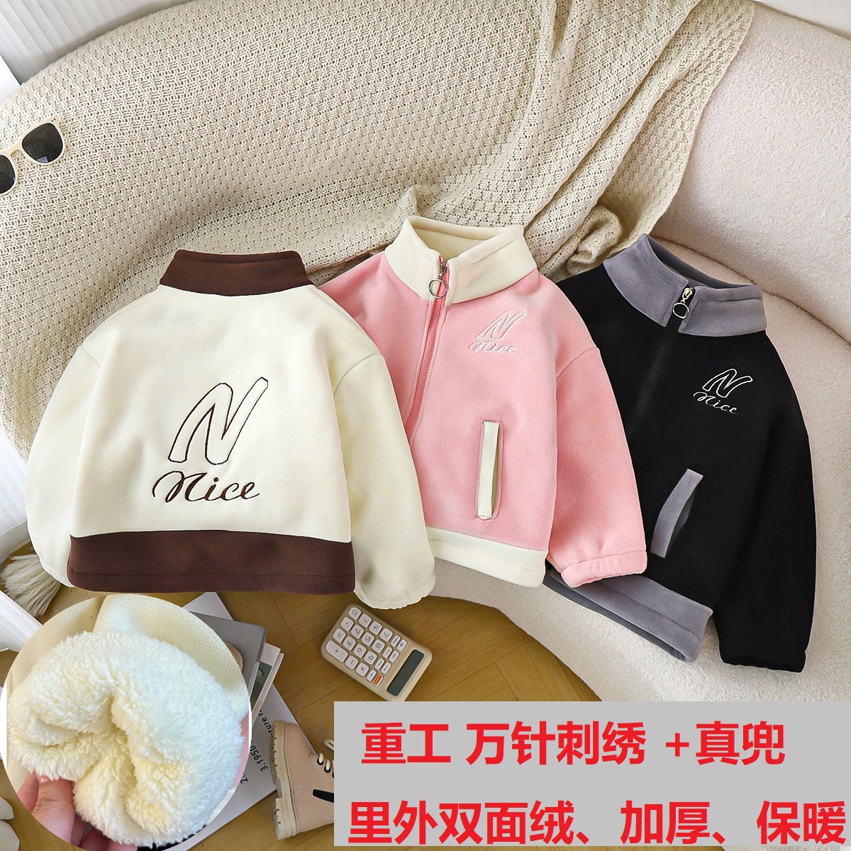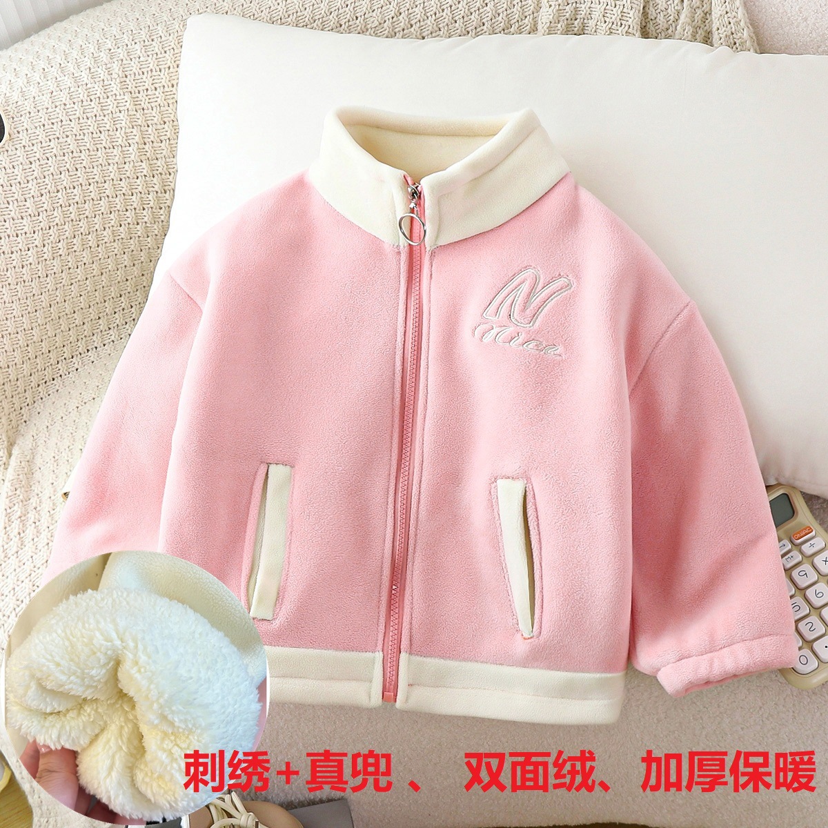 2025 겨울 아동용 양면 벨벳 두꺼운 자수 라펠 코트 도매스토어 가기