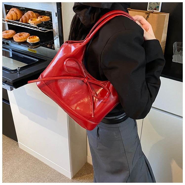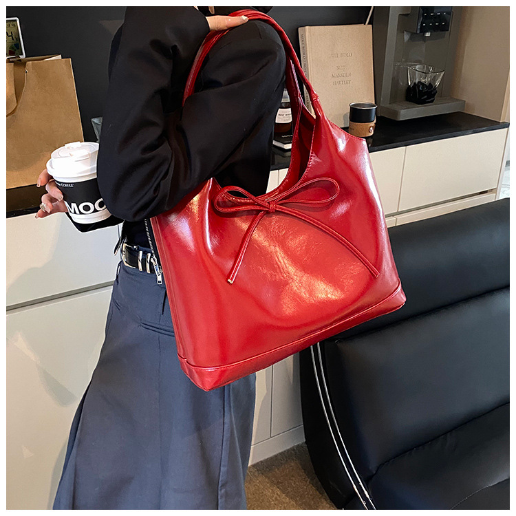 한국 스타일 틈새 활 토트 백 여자 2025 새로운 대용량 어깨 언더암 가방 통근 올 매치 핸드백