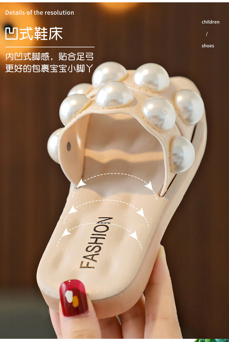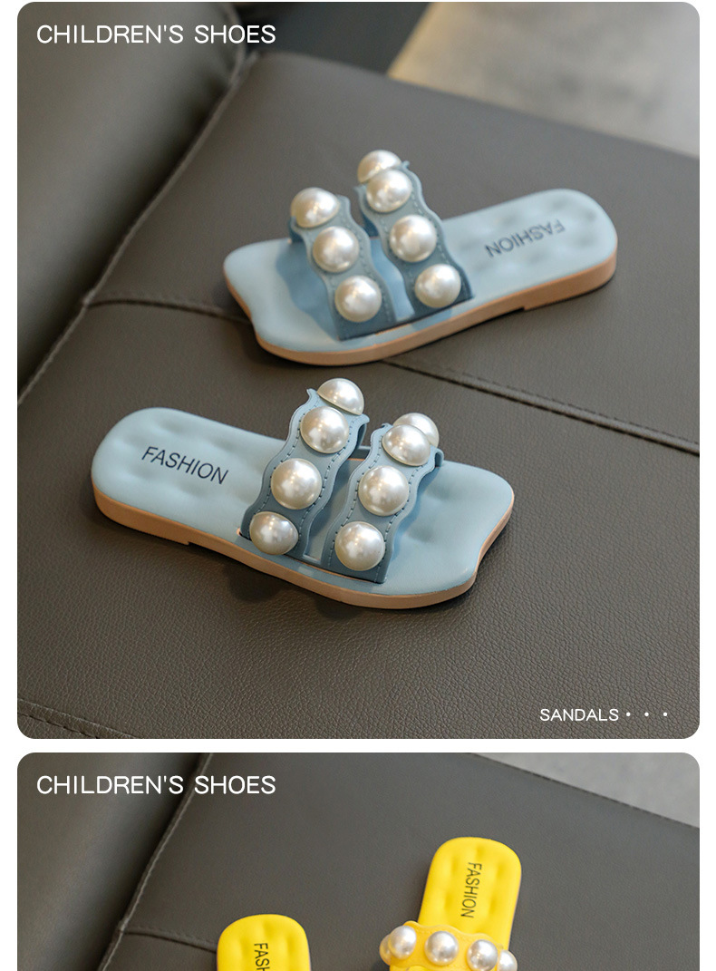 어린이 부모-어린이 슬리퍼 여름 의상 실내 패션 큰 진주 요정 스타일 부드러운 바닥 소녀 홈 사계절 샌들