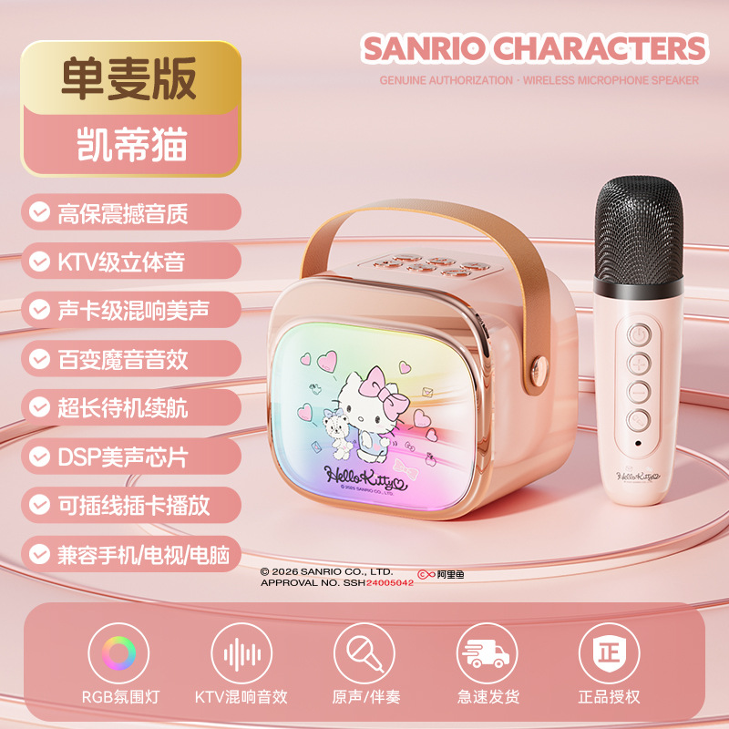Sanrio 정품 공인 어린이용 마이크 오디오 통합 마이크 홈 무선 블루투스 소형 스피커스토어 가기