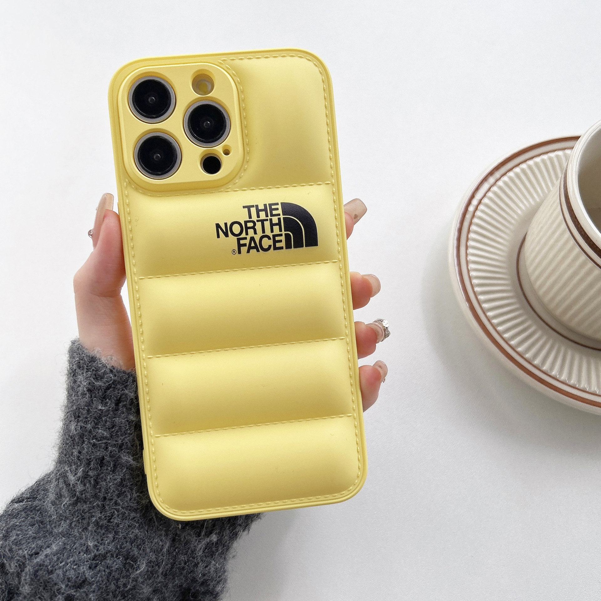 • 오일 스프레이 TPU 다운 재킷 휴대폰 케이스 - 노란색 노스 페이스 [벨벳 제외]