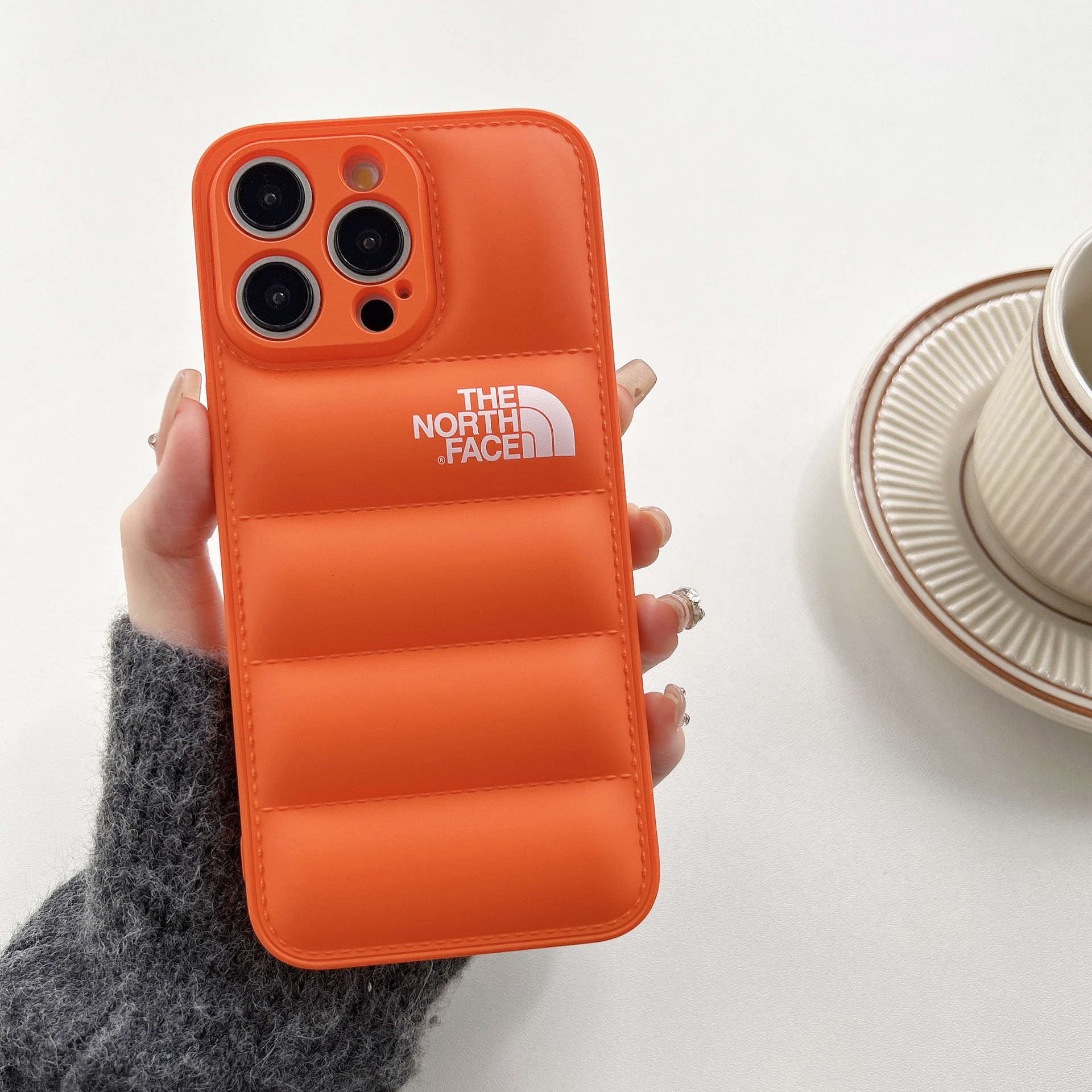 • 오일 스프레이 TPU 다운 재킷 휴대폰 케이스 - 오렌지 노스 페이스 [벨벳 제외]