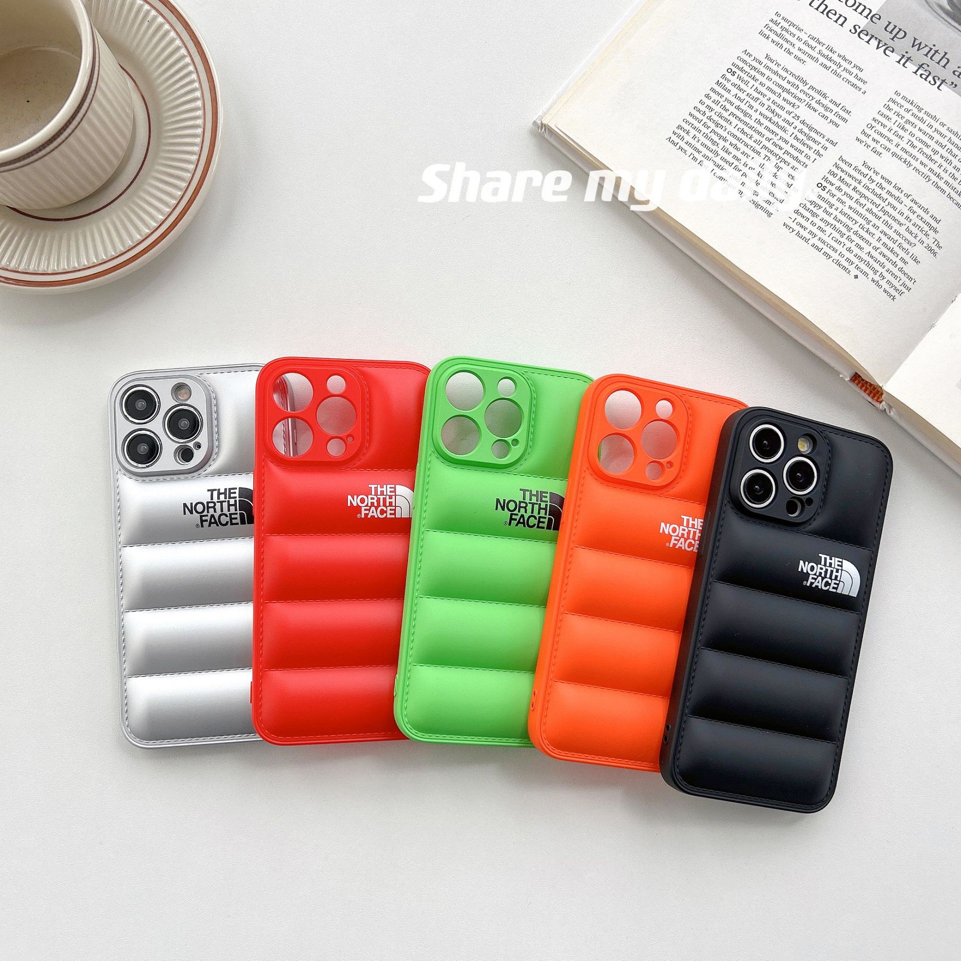 • 오일 스프레이 TPU 다운 재킷 휴대폰 케이스 - 그린 노스 페이스 [벨벳 제외]
