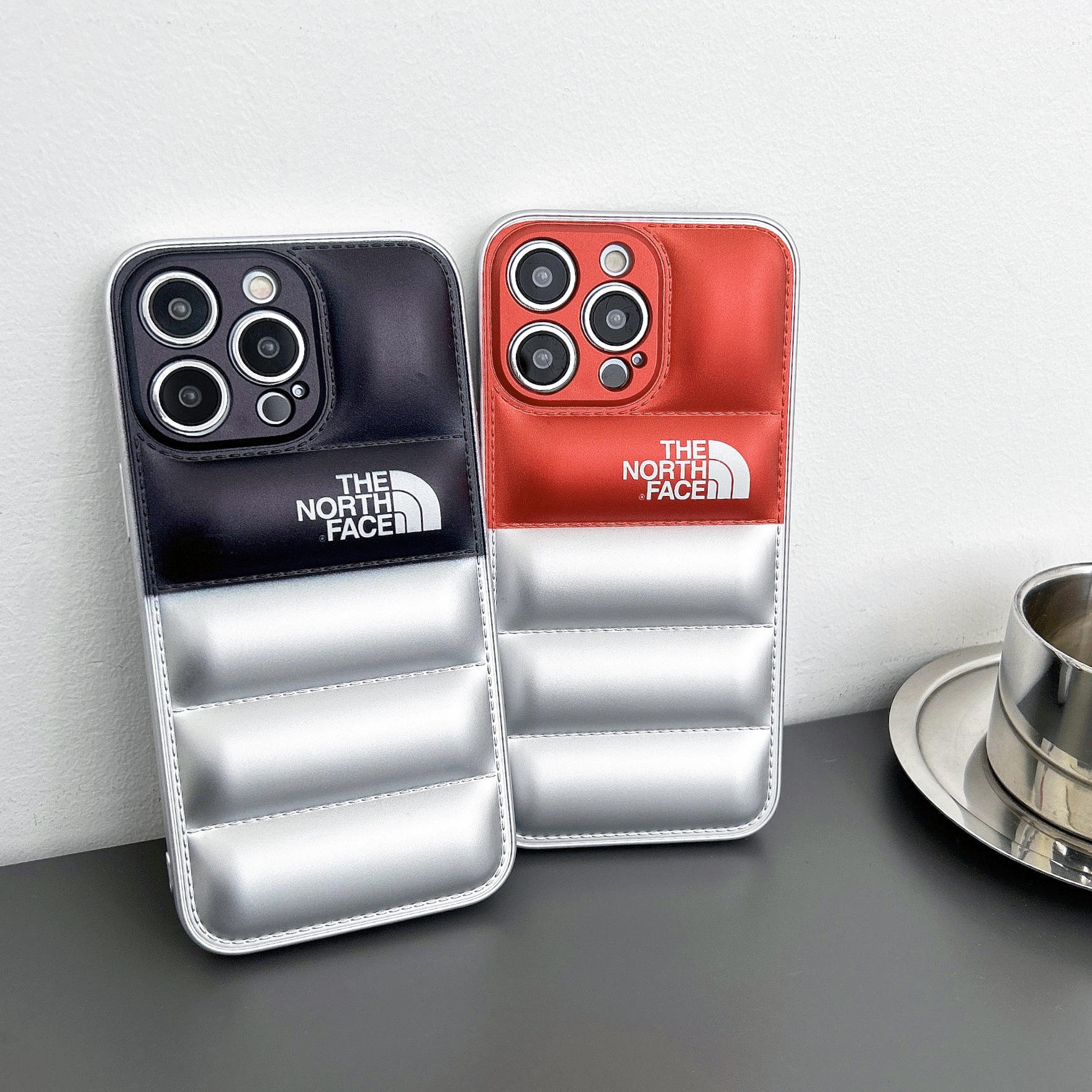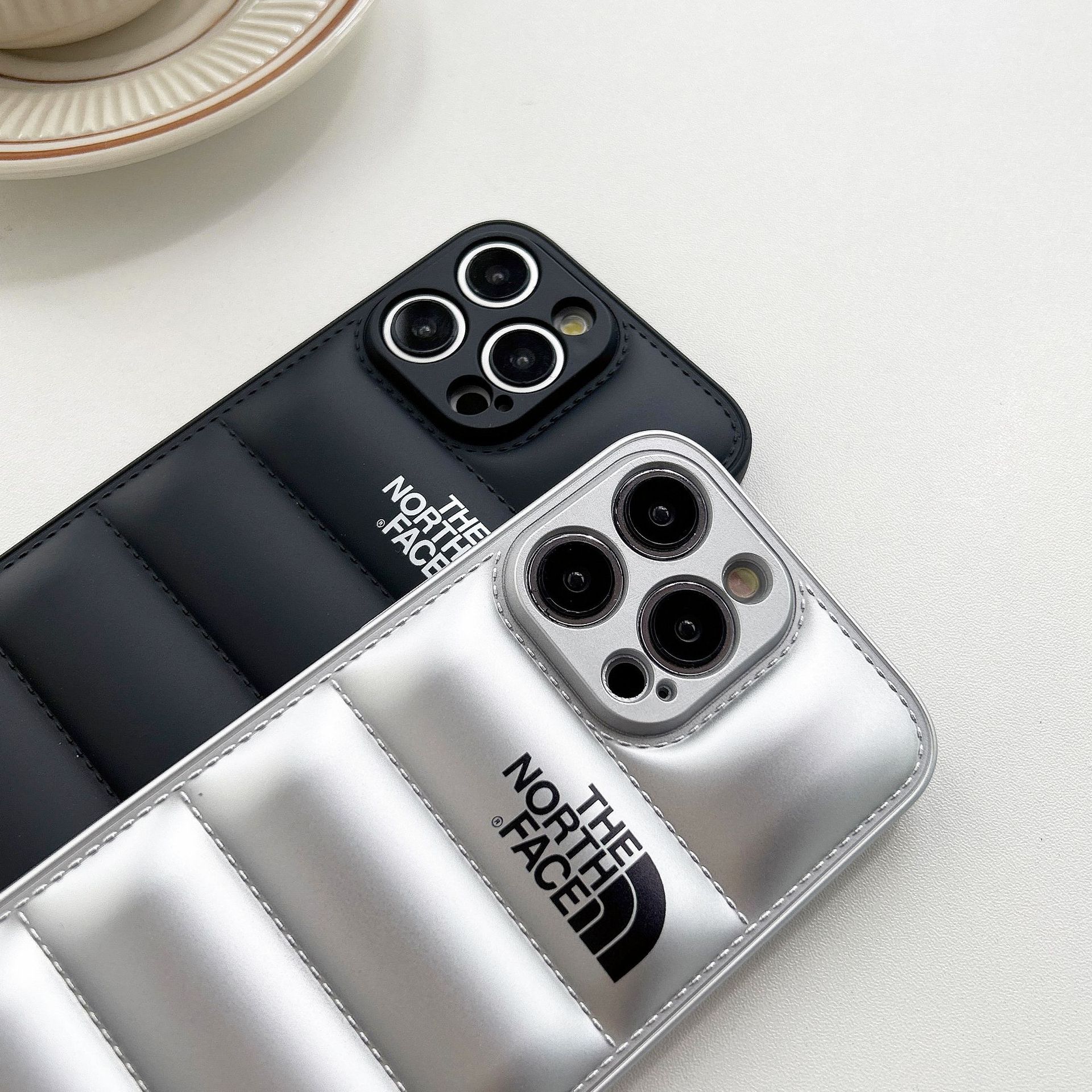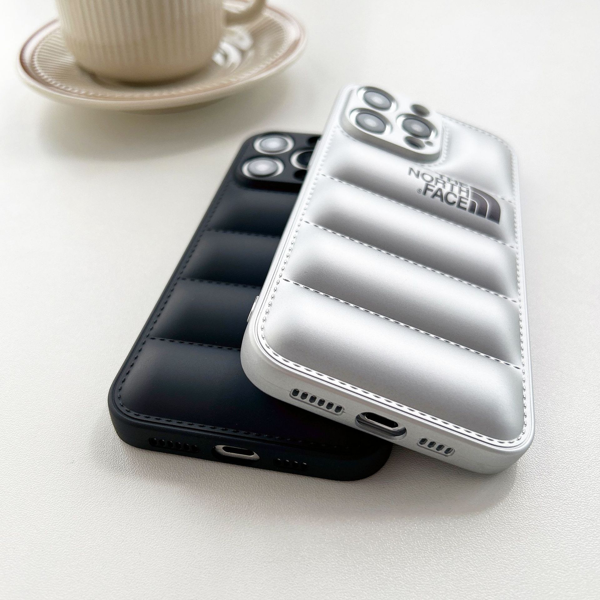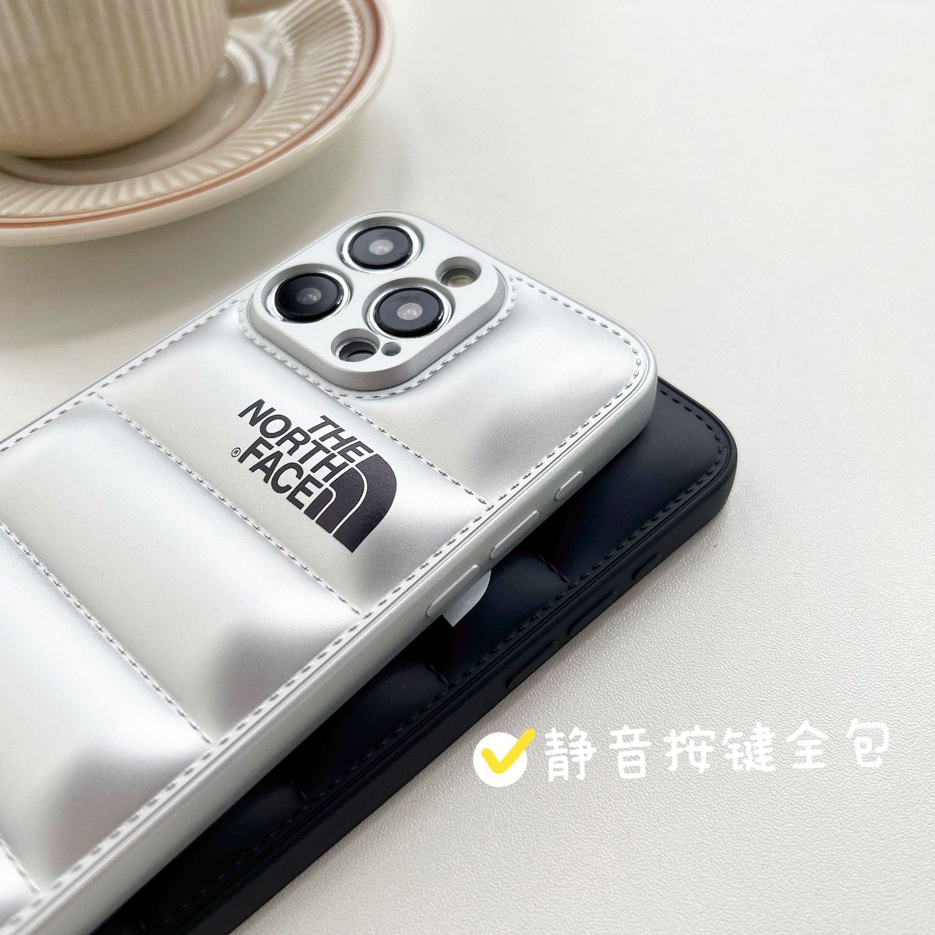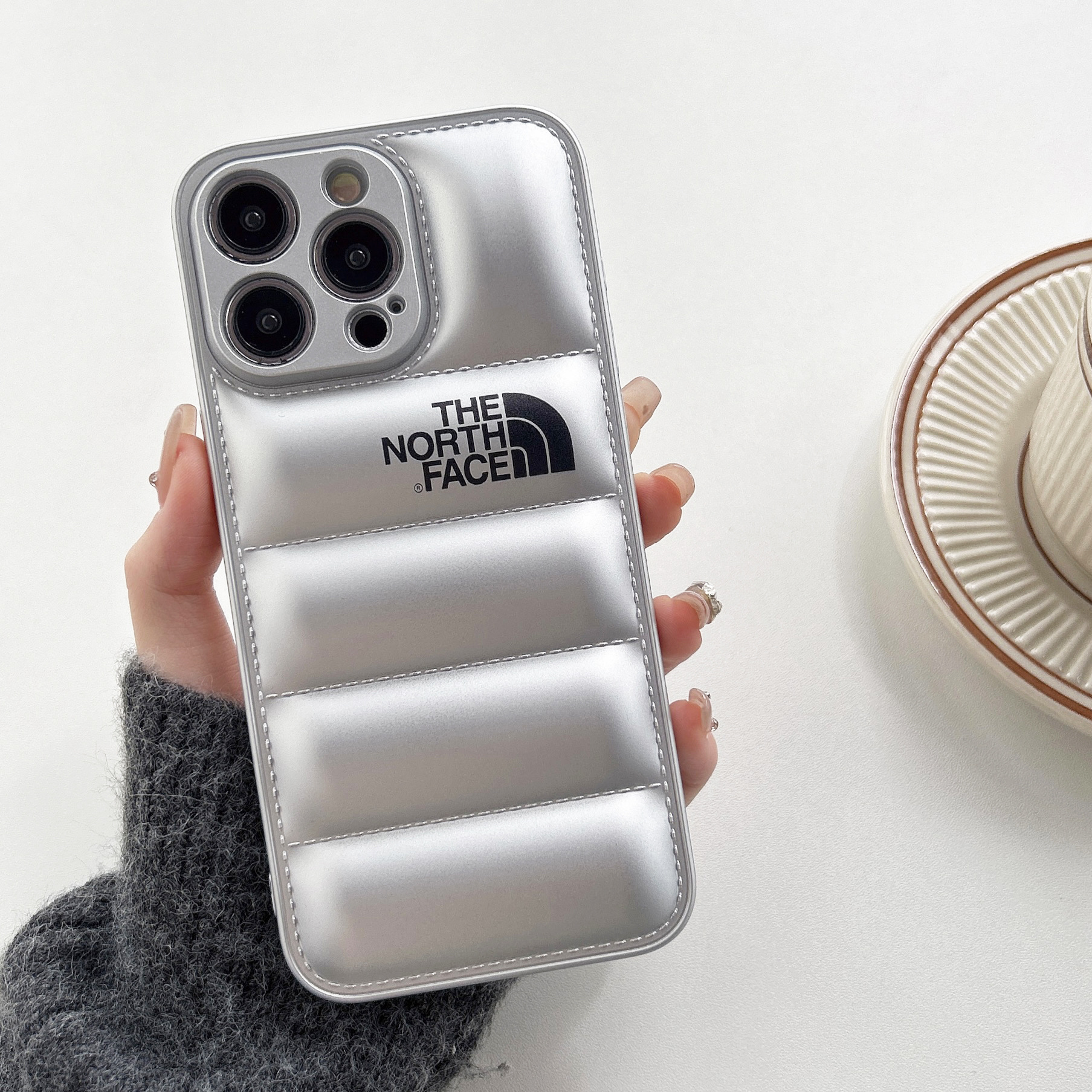 • 오일 스프레이 TPU 다운 재킷 휴대폰 케이스 - 실버 노스 페이스 [벨벳 제외]
