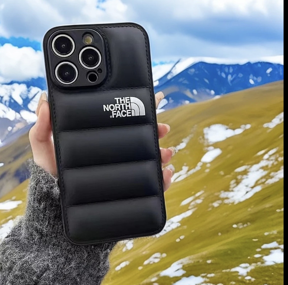 • 오일 스프레이 TPU 다운 재킷 휴대폰 케이스 - 블랙 노스 페이스 [벨벳 제외]