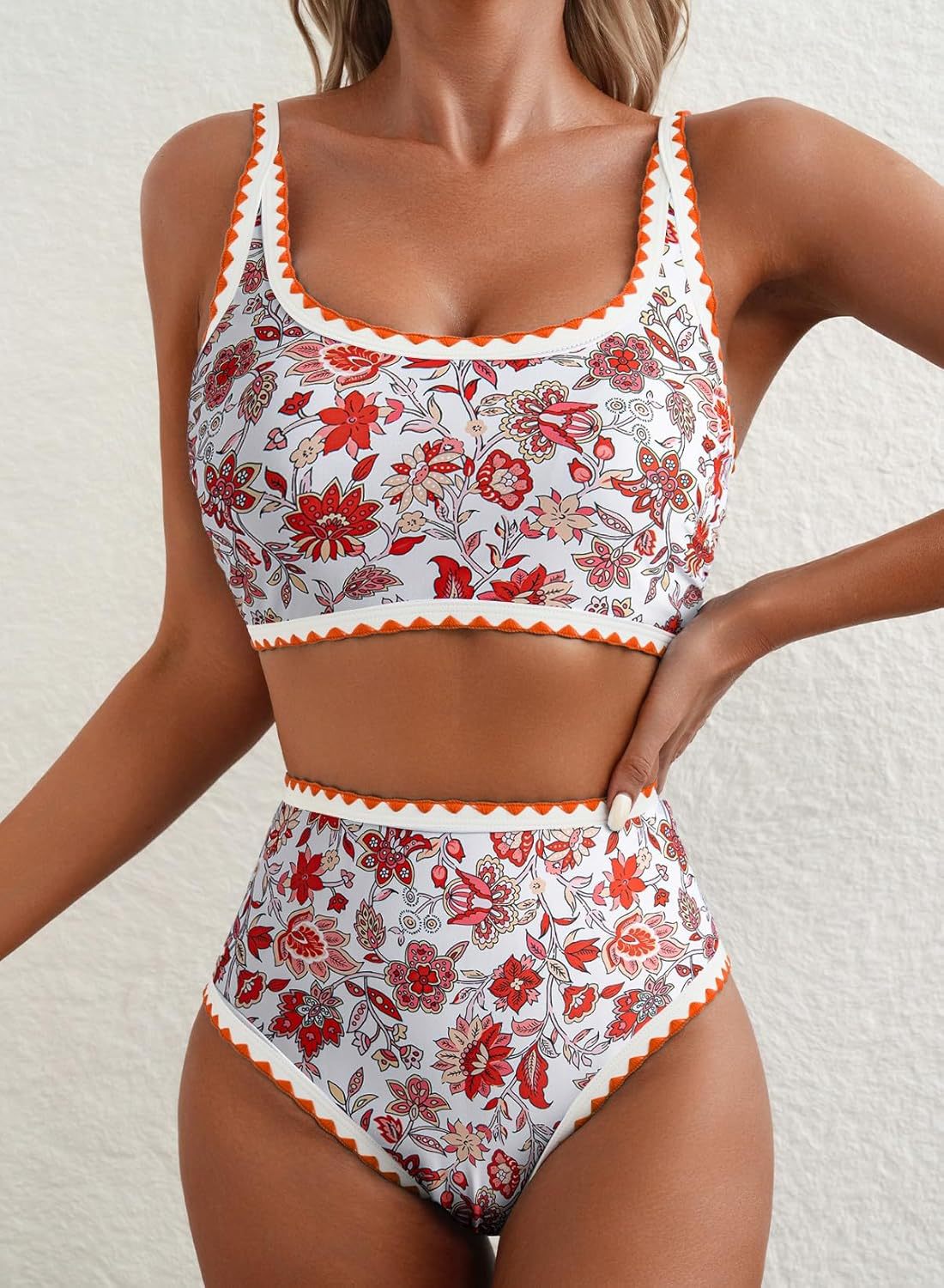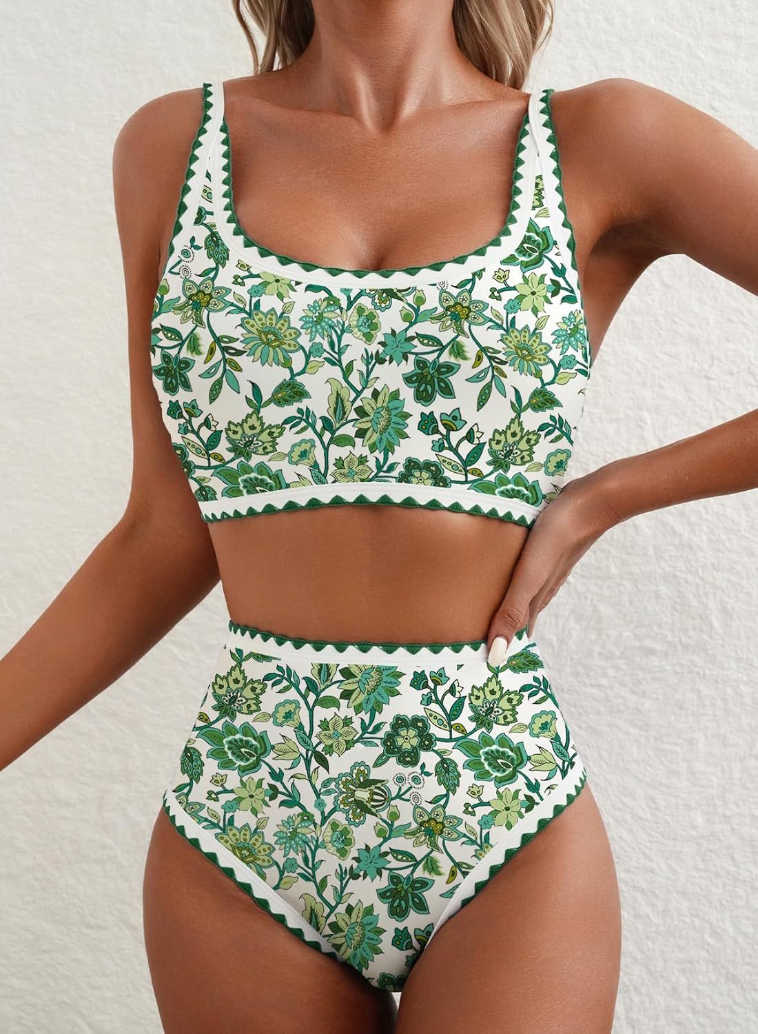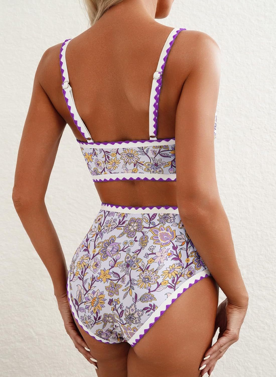 슬링 2 피스 스플릿 수영복 유행 페이즐리 패턴 꽃 이빨 컬러 매칭 섹시한 비키니 수영복 세트