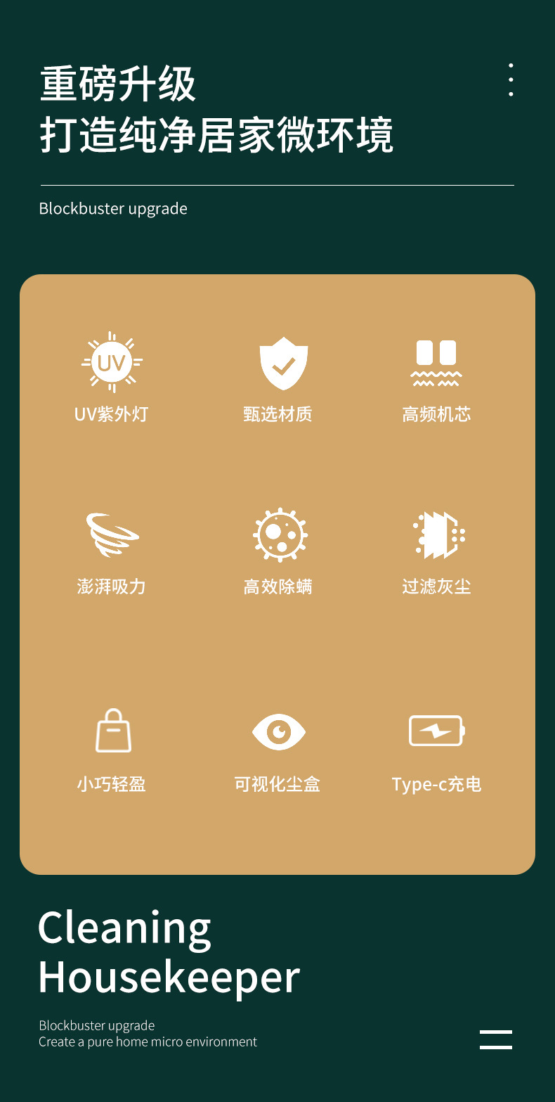 가정용 진드기 리무버 무선 충전 침대 소형 진공 청소기 휴대용 강한 흡입 휴대용 진드기 리무버 선물 도매스토어 가기