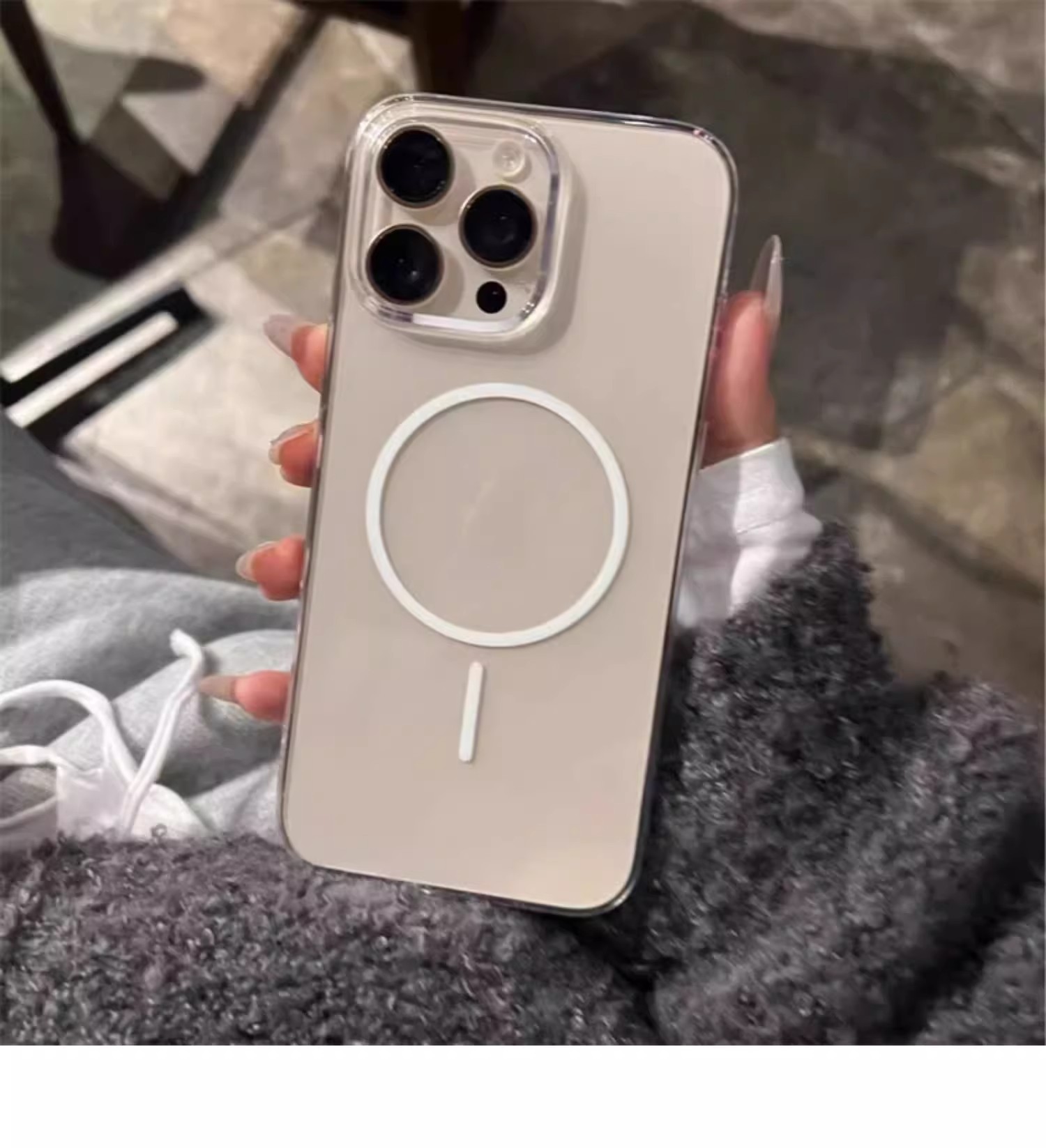 iPhone17promax 휴대폰 케이스에 적합한 투명 PC 미세 원형 자기 흡입 Apple 15 일체형 낙하 방지 14 하드 케이스 13스토어 가기