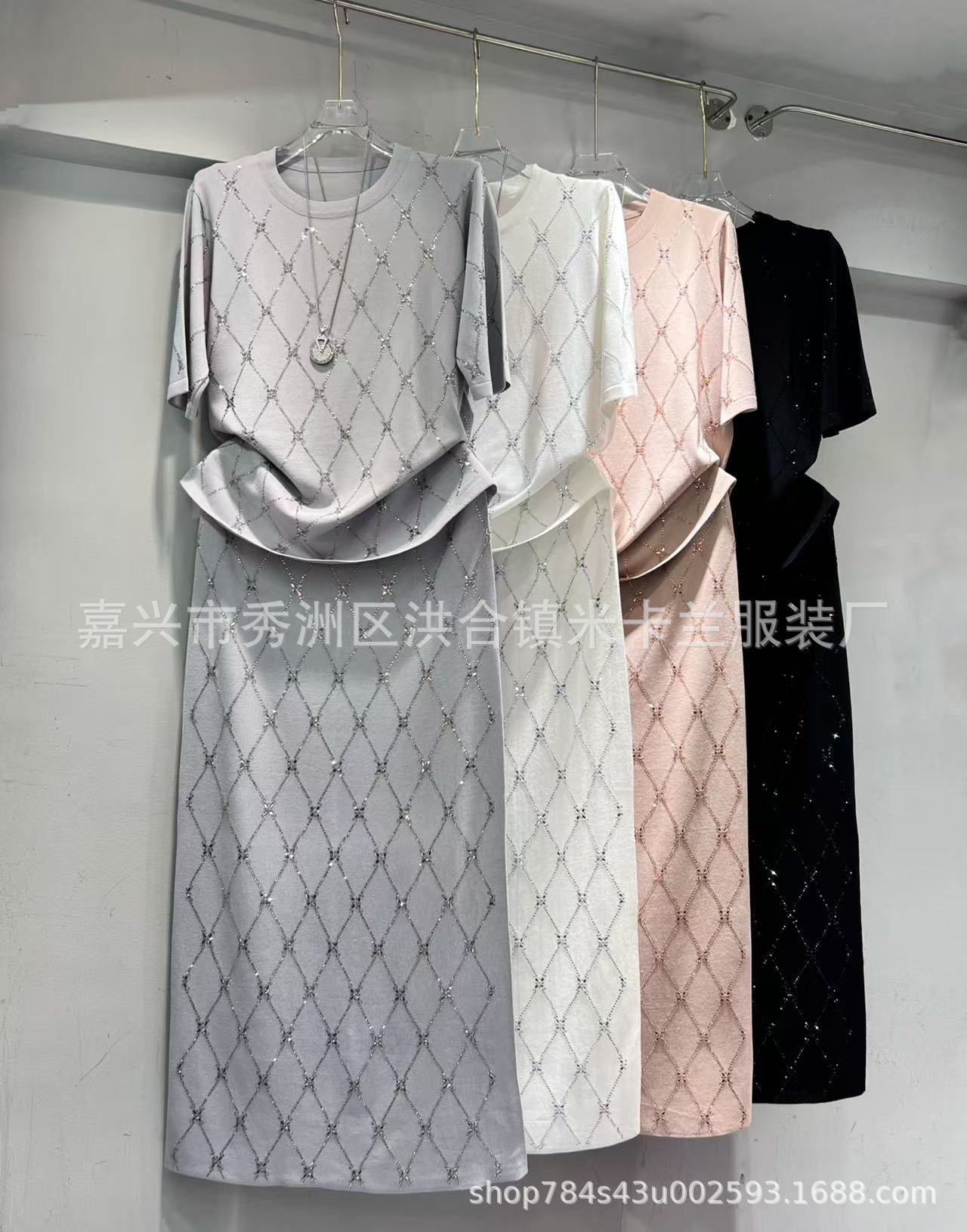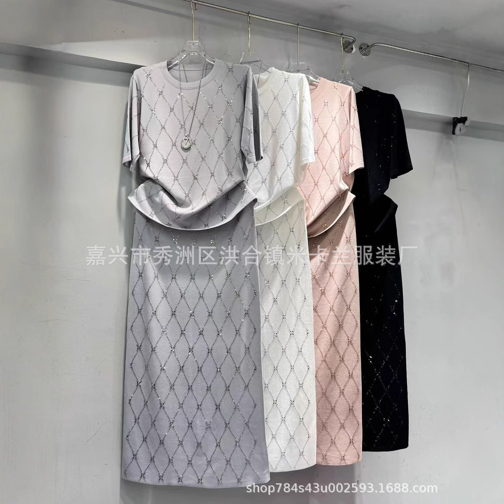큐즈비드 아이스 실크 고온 다이아몬드 장식 여성 여름 정장, 고급스러운 2025년 신상 여성 반팔 티셔츠스토어 가기