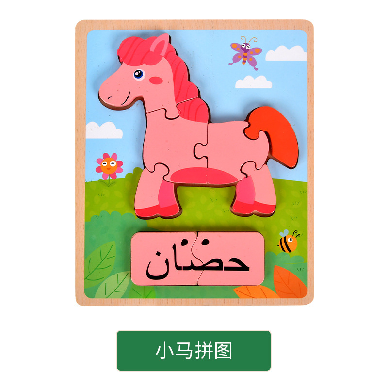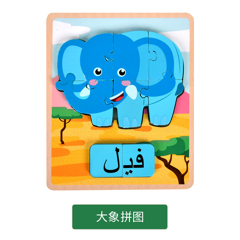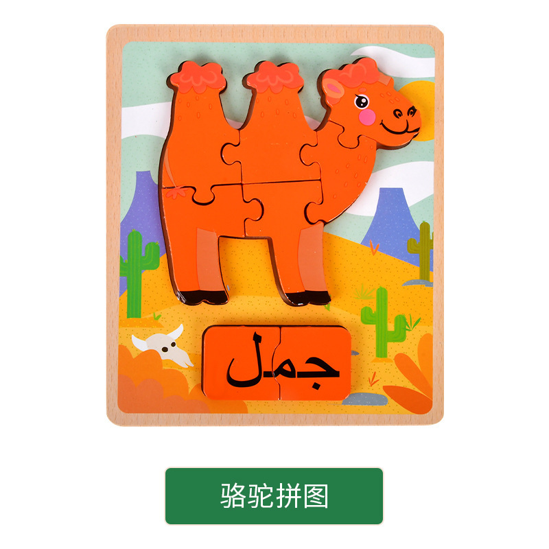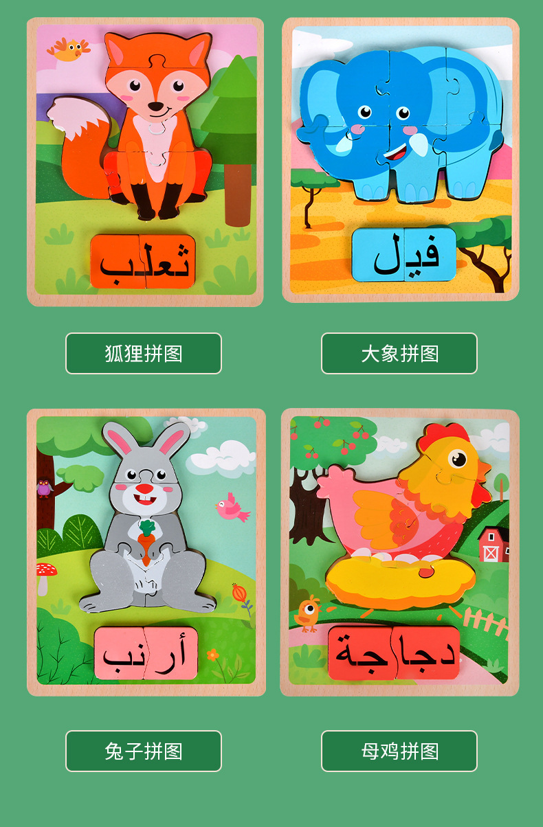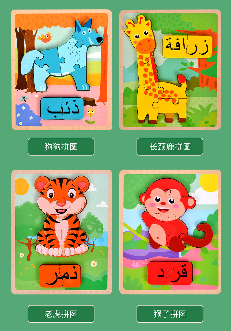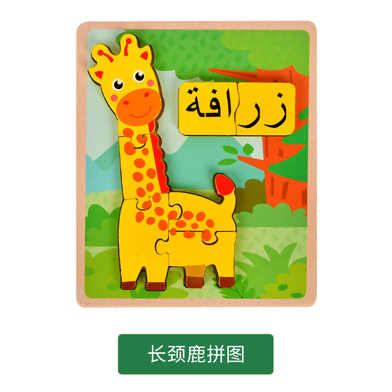 아랍어 장난감 아랍 동물 직소 퍼즐 인지 교육 에이즈 3 세 어린이 나무 직소 퍼즐 아기 국경스토어 가기