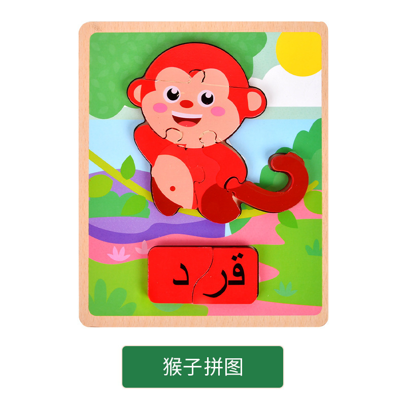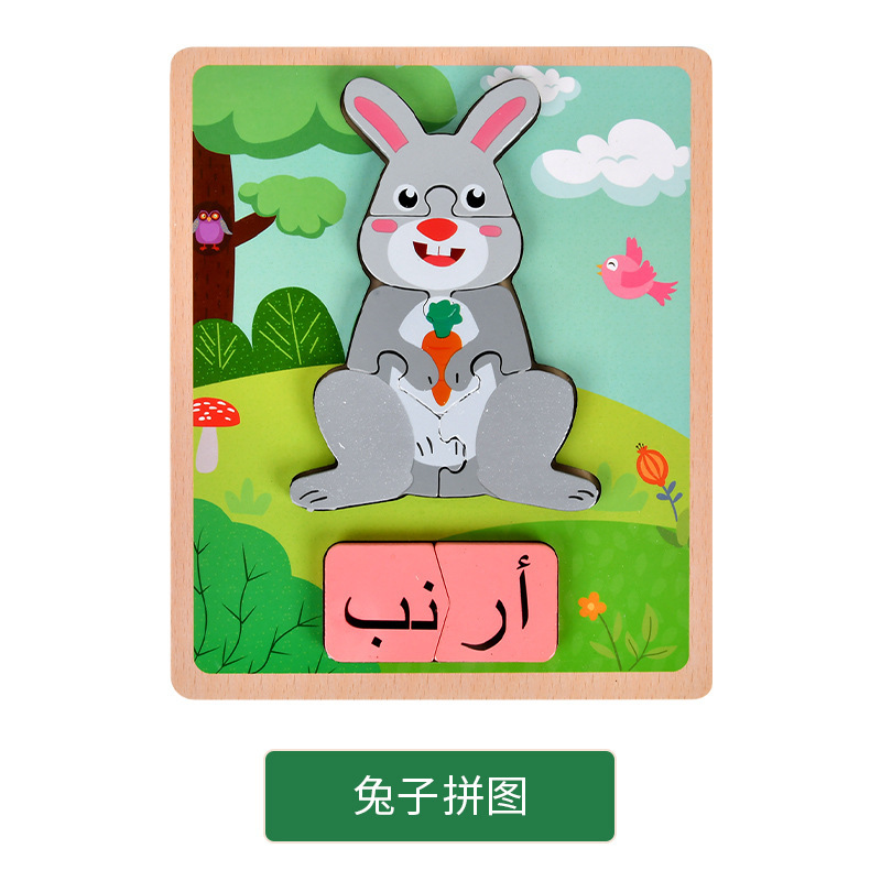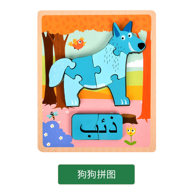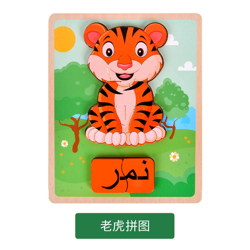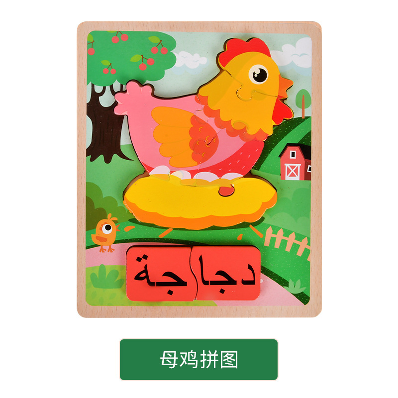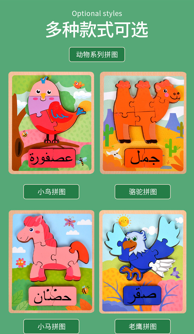 아랍어 장난감 아랍 동물 직소 퍼즐 인지 교육 에이즈 3 세 어린이 나무 직소 퍼즐 아기 국경스토어 가기