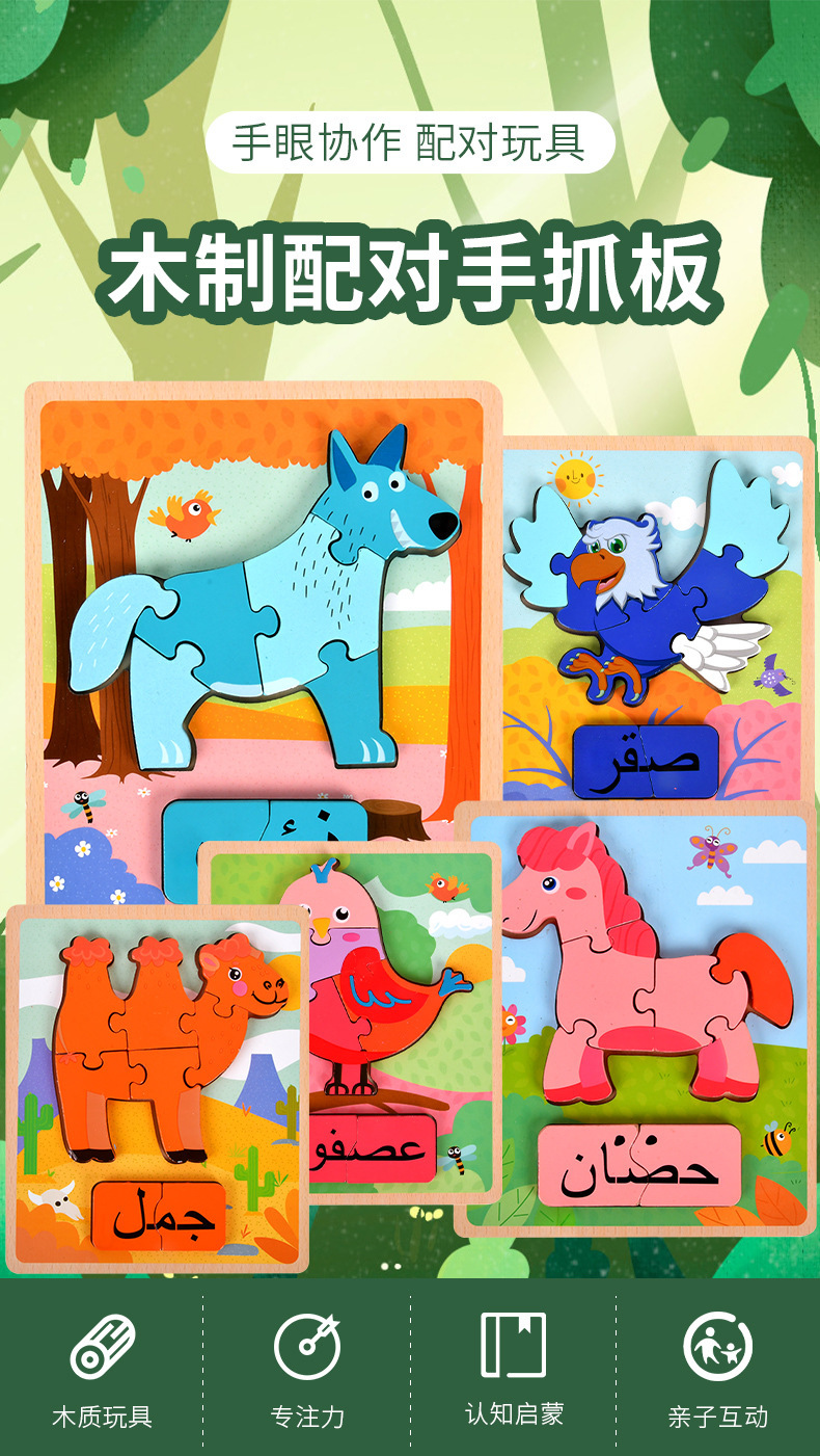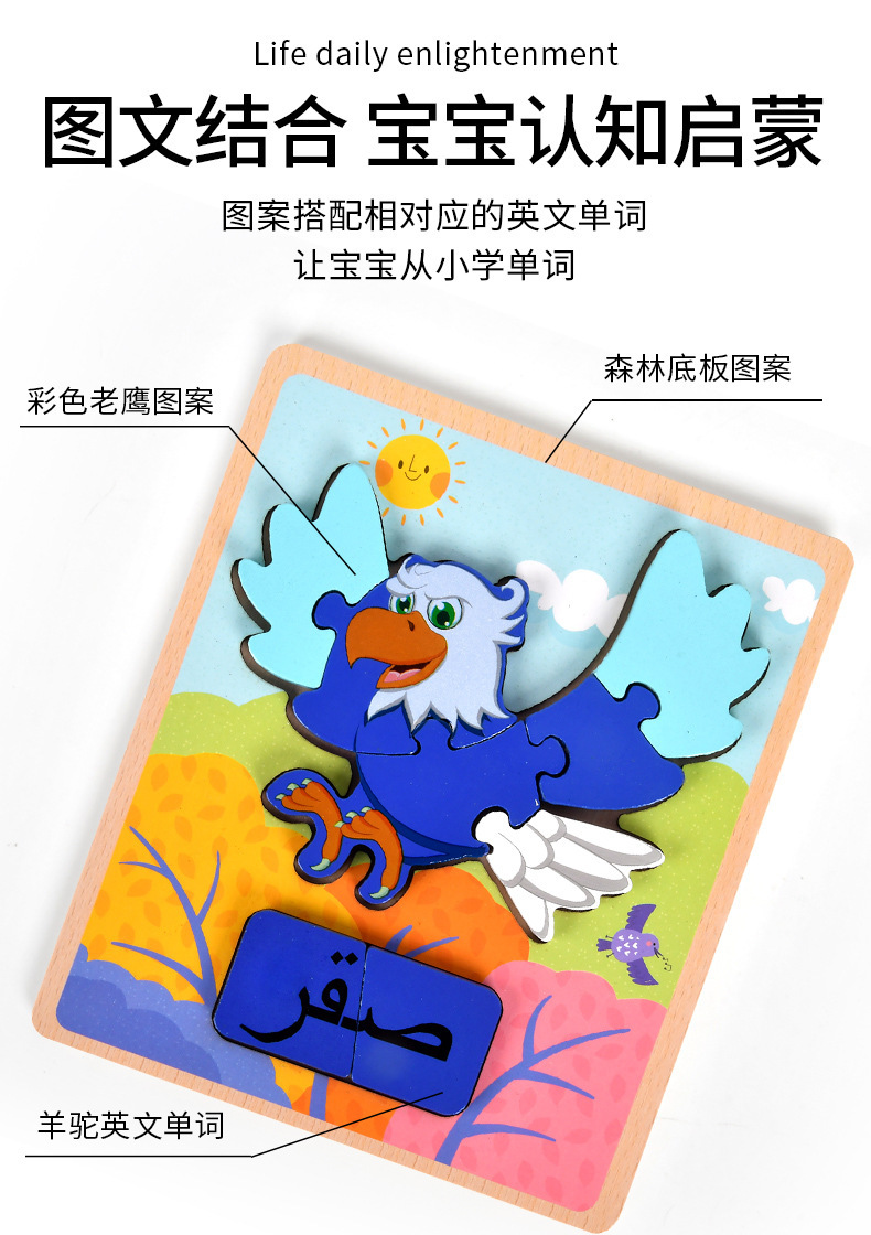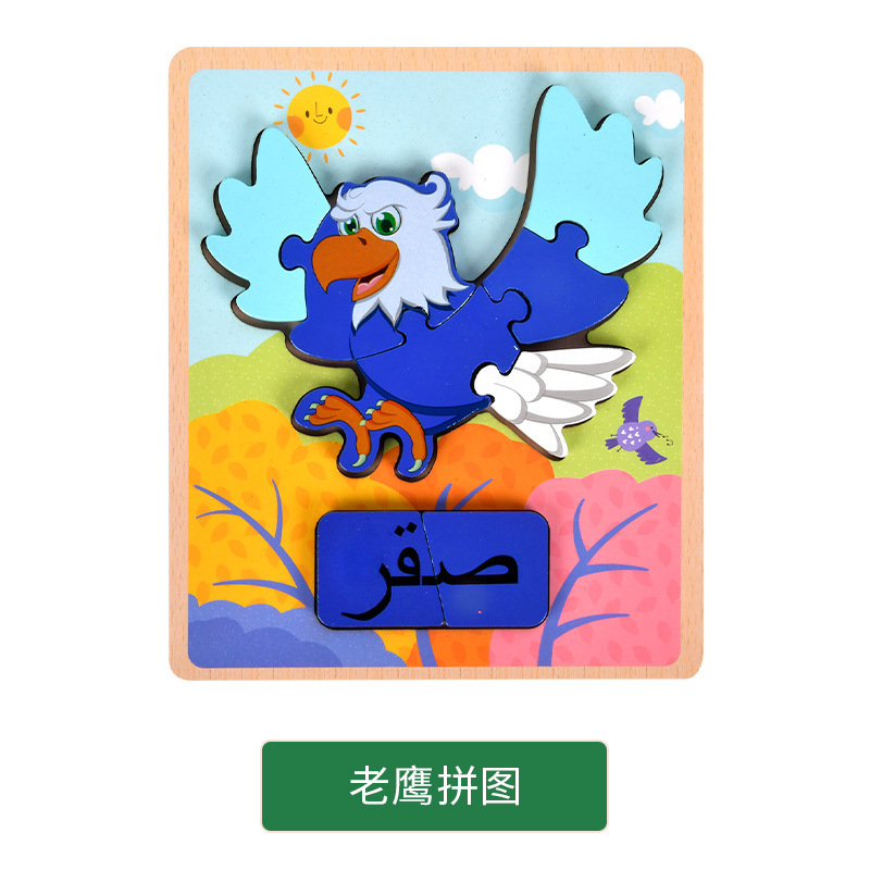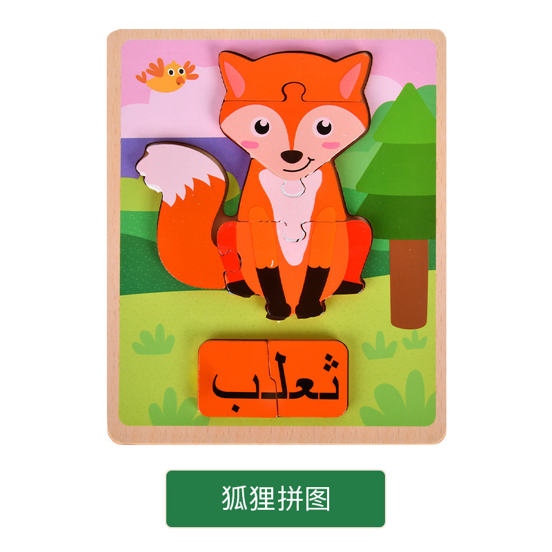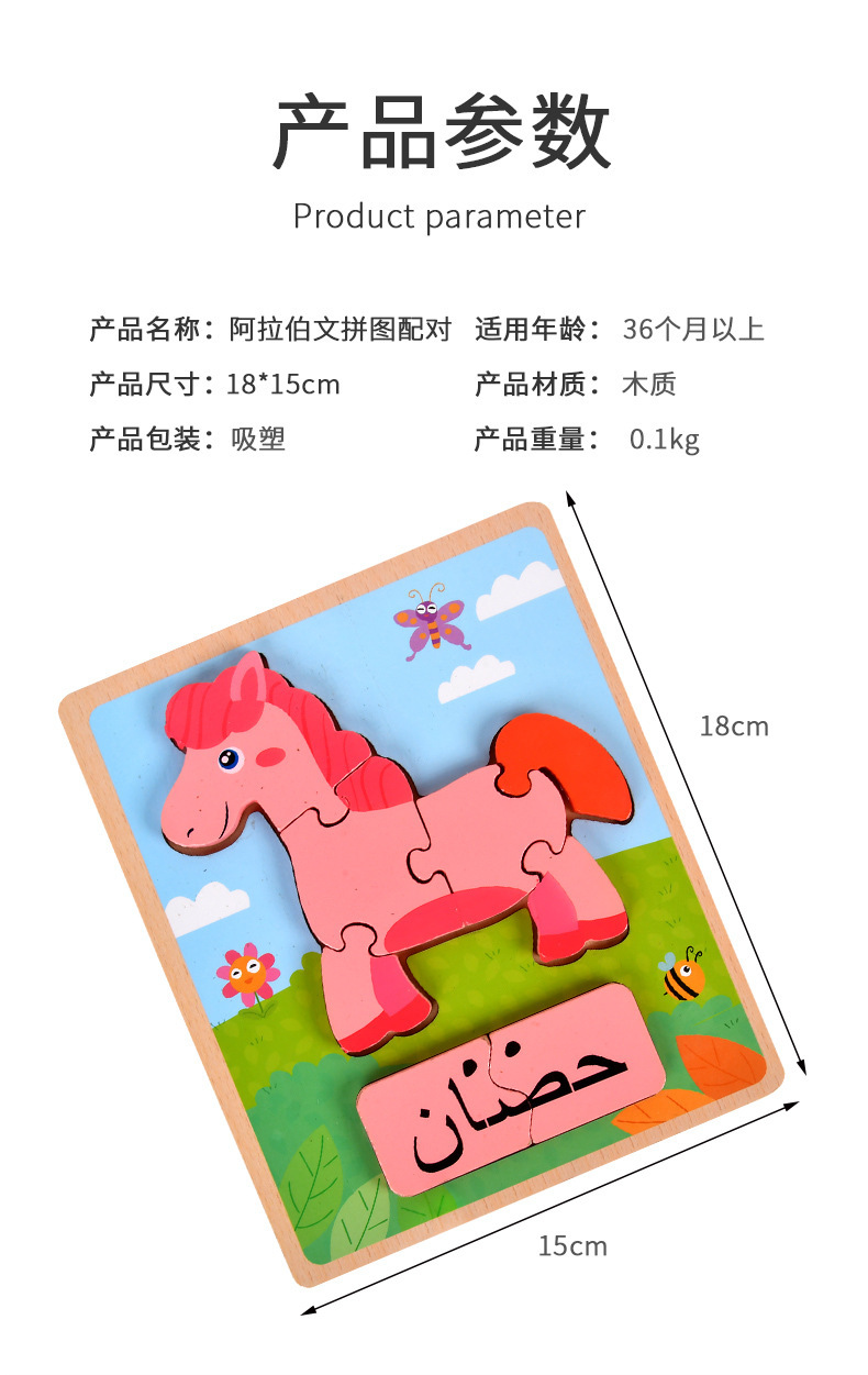 아랍어 장난감 아랍 동물 직소 퍼즐 인지 교육 에이즈 3 세 어린이 나무 직소 퍼즐 아기 국경스토어 가기
