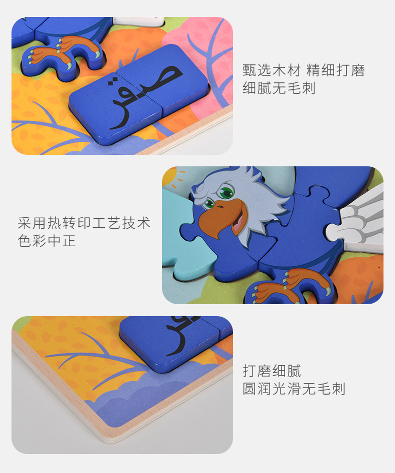 아랍어 장난감 아랍 동물 직소 퍼즐 인지 교육 에이즈 3 세 어린이 나무 직소 퍼즐 아기 국경