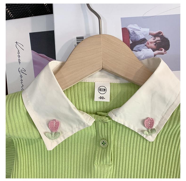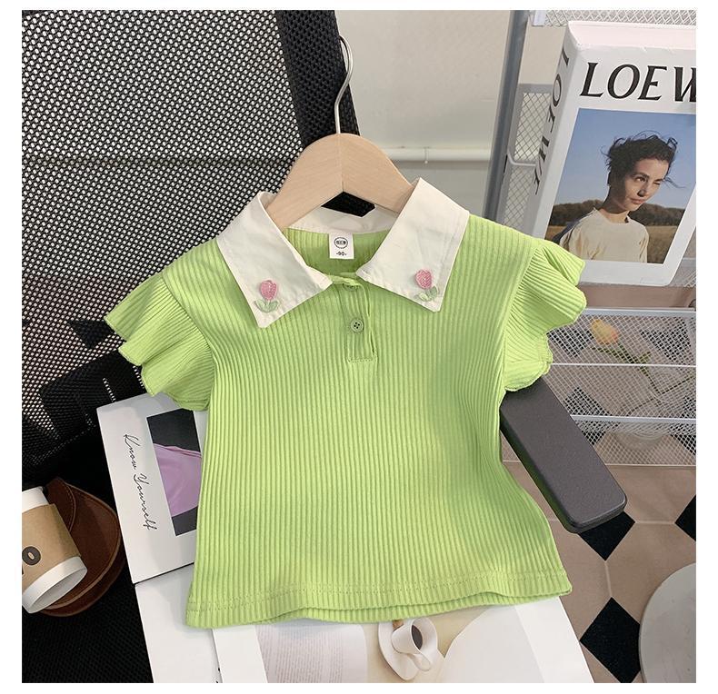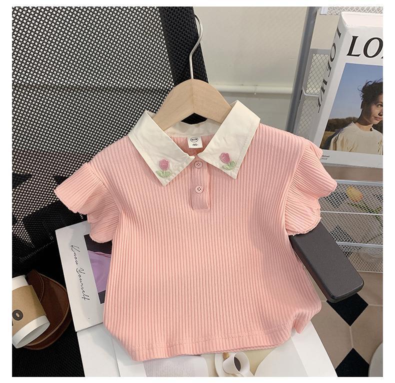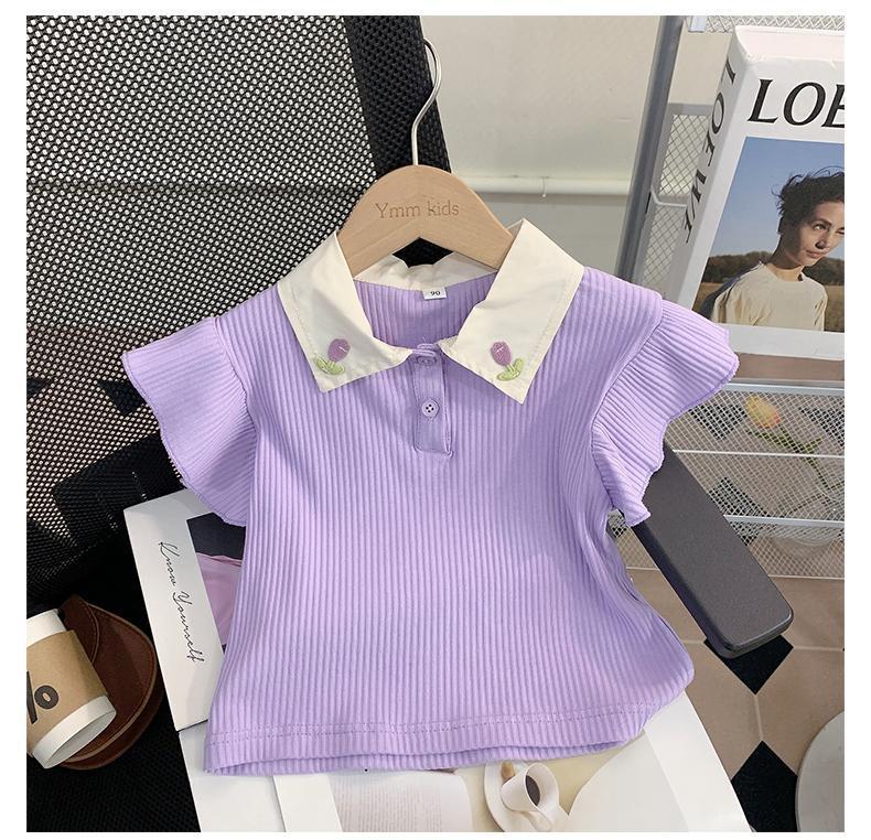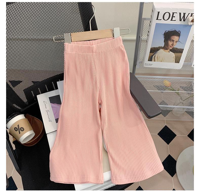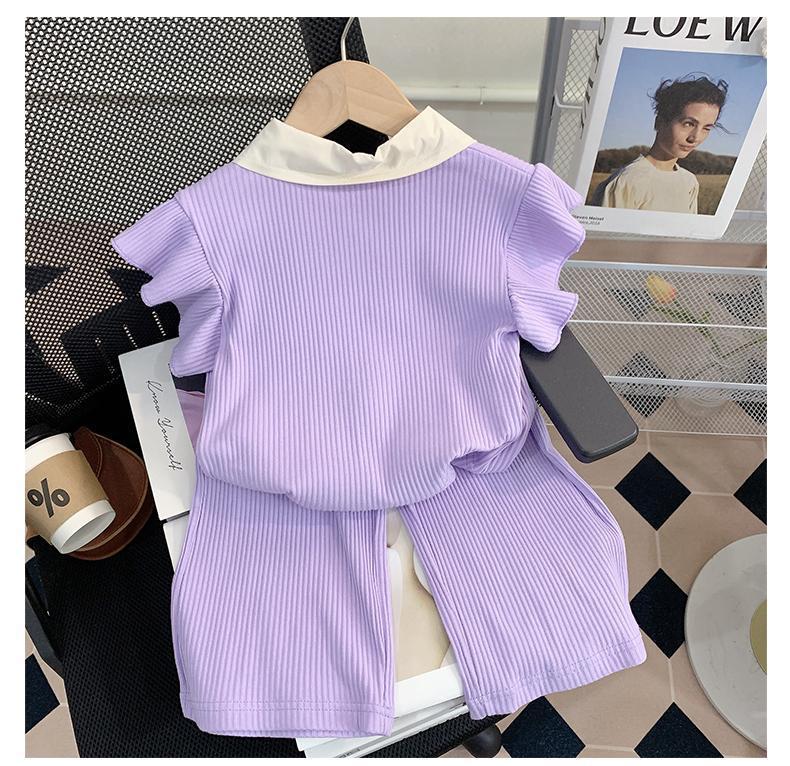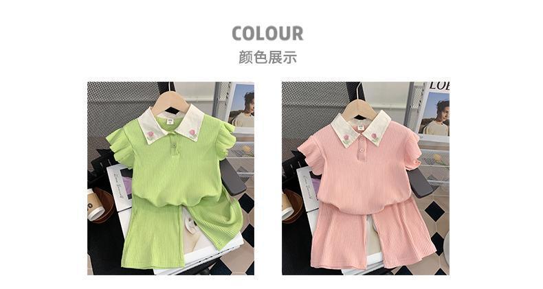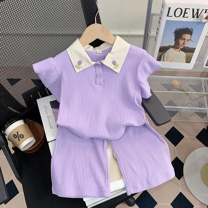 소녀 세트 여름 새로운 어린이 세련된 반팔 탑 아기 세련된 와이드 레그 바지 투피스 세트