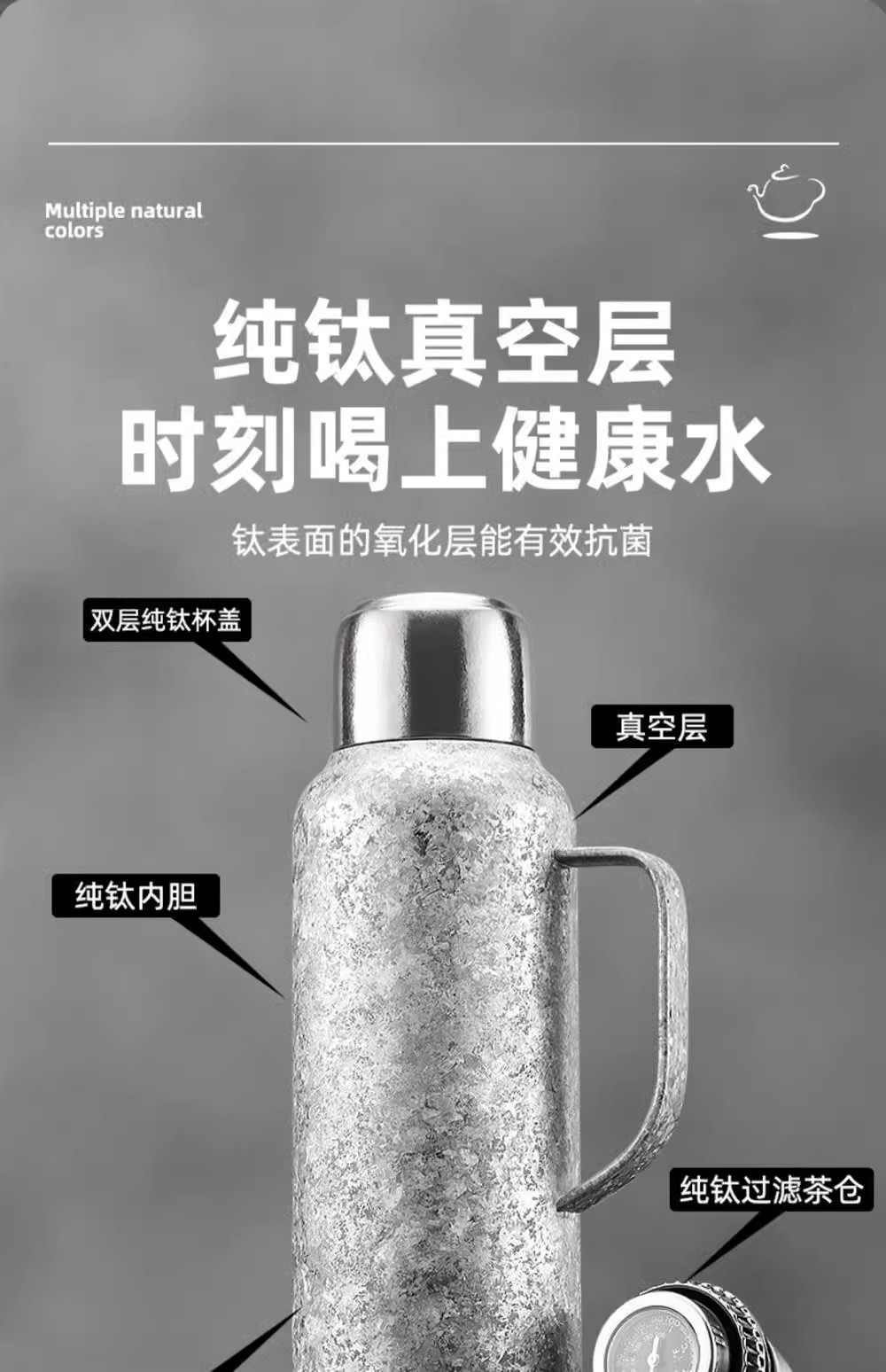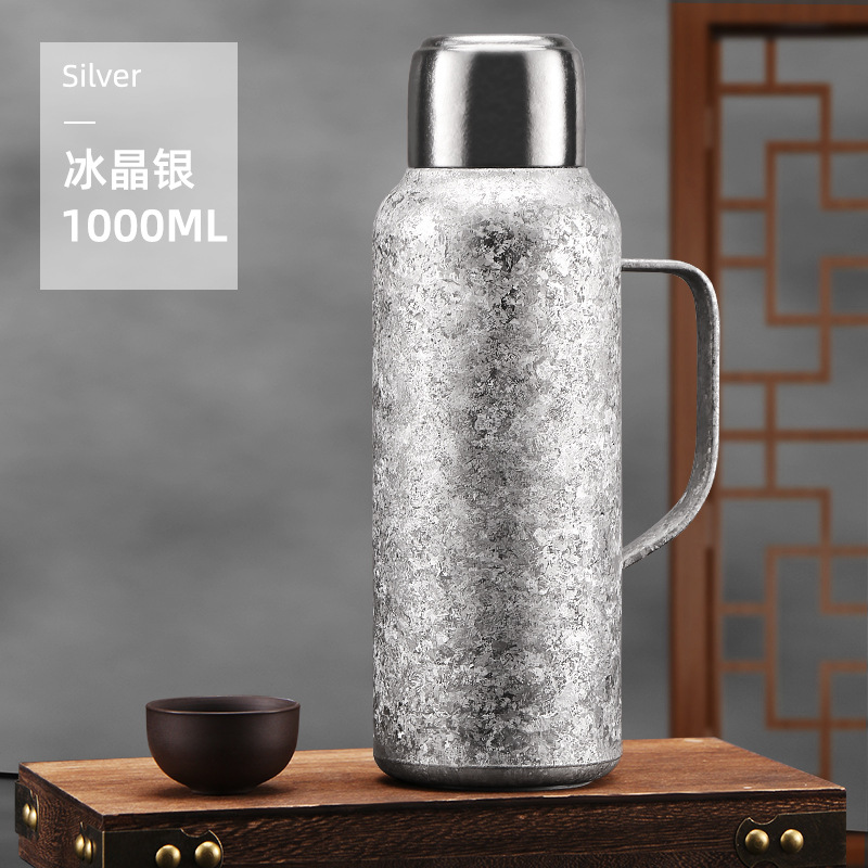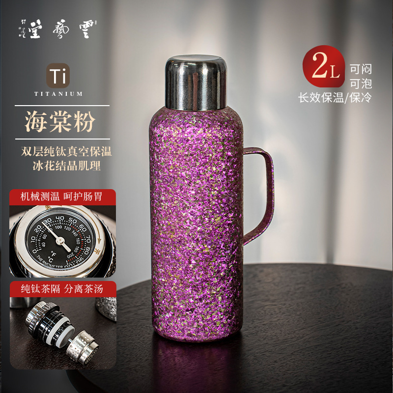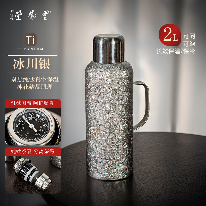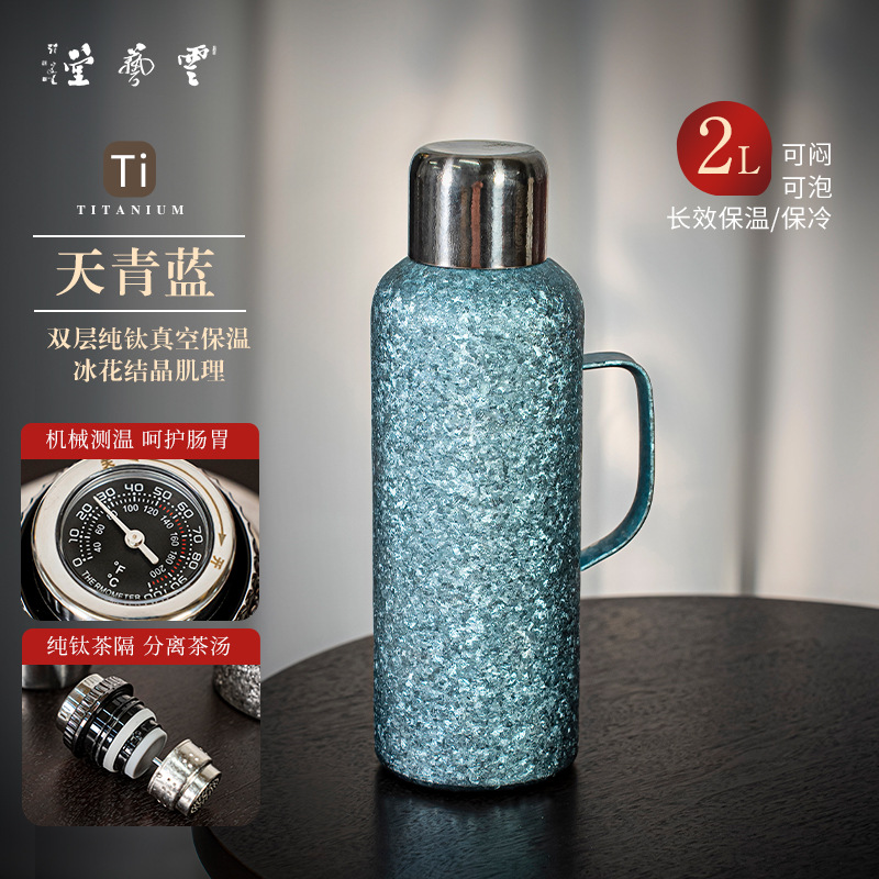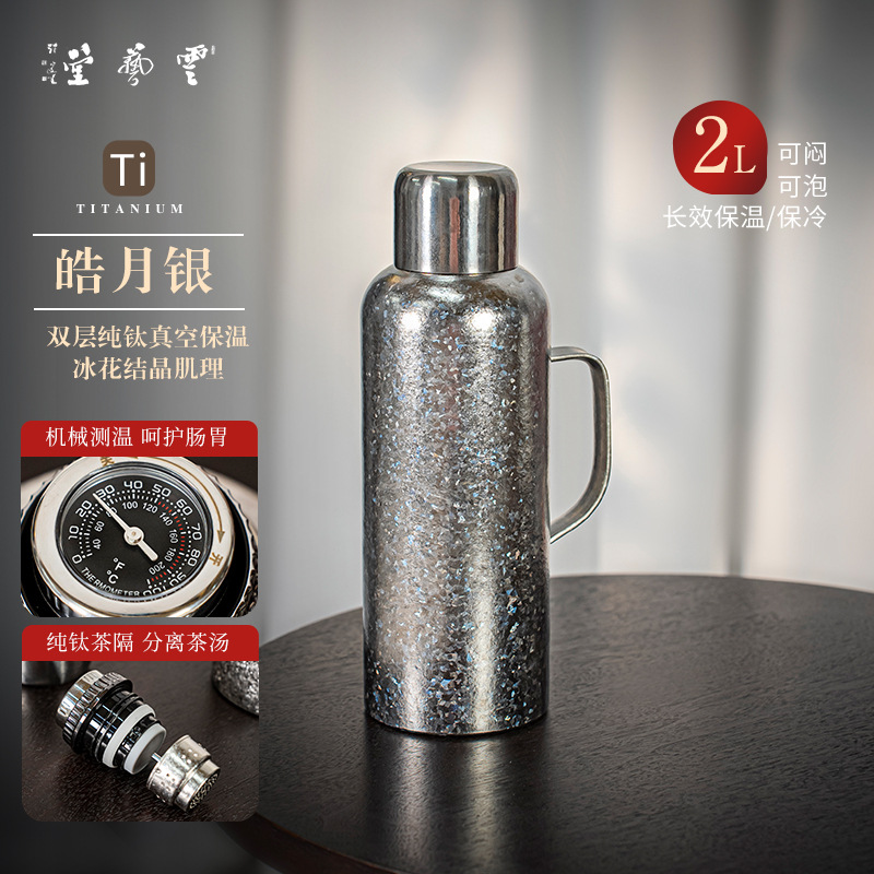 고급 순수 티타늄 이중층 보온병 컵 대용량 가정용 티타늄 냄비 보온병 냄비 티타늄 합금 라이너 스튜 주전자 패밀리 팟
