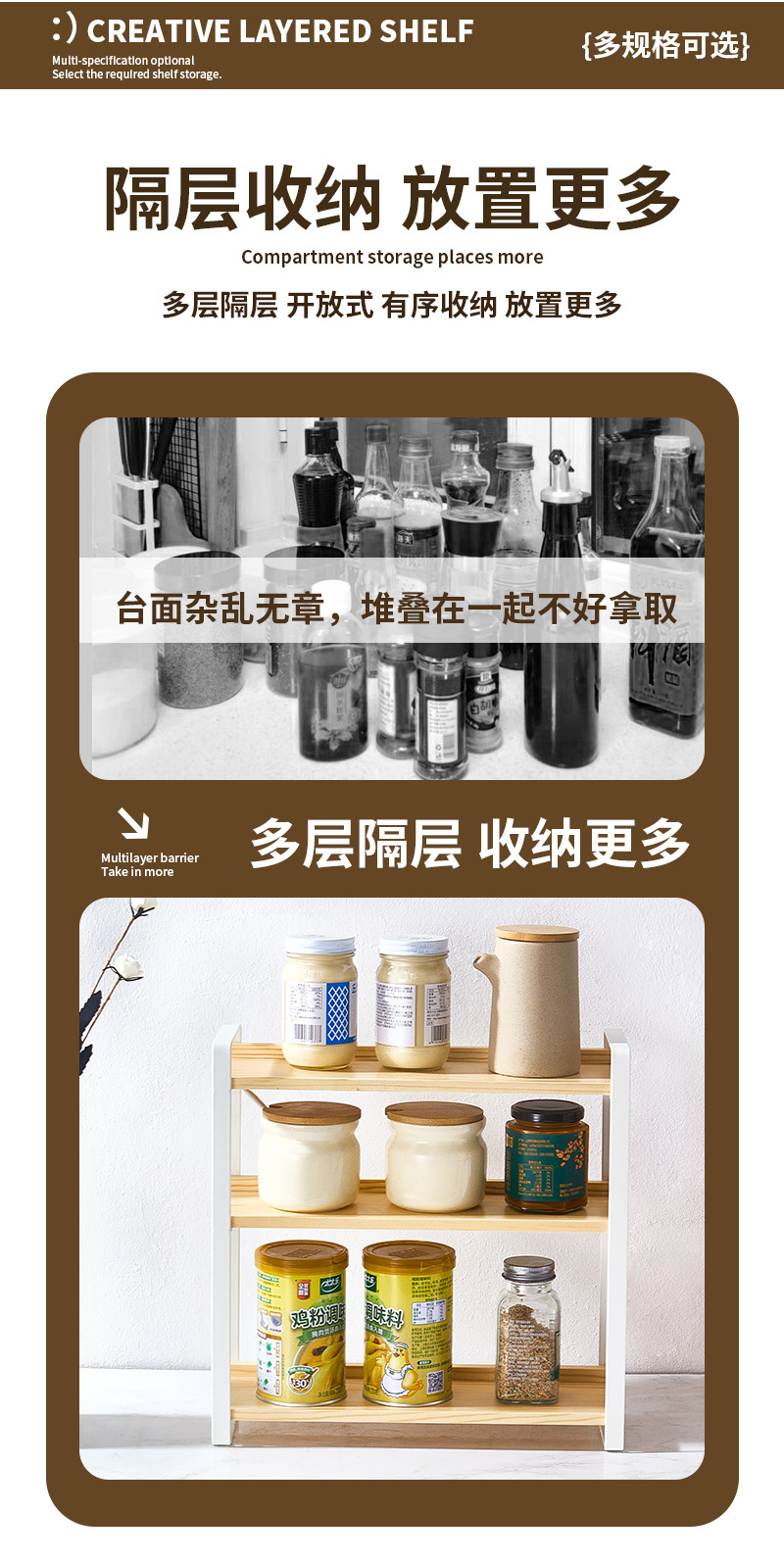 창틀 사이드 카운터 탑 멀티 레이어 목재 스토리지 랙 조미료 워터 컵 파티션 스토리지 매우 좁은 주방 캐비닛 스토리지 랙