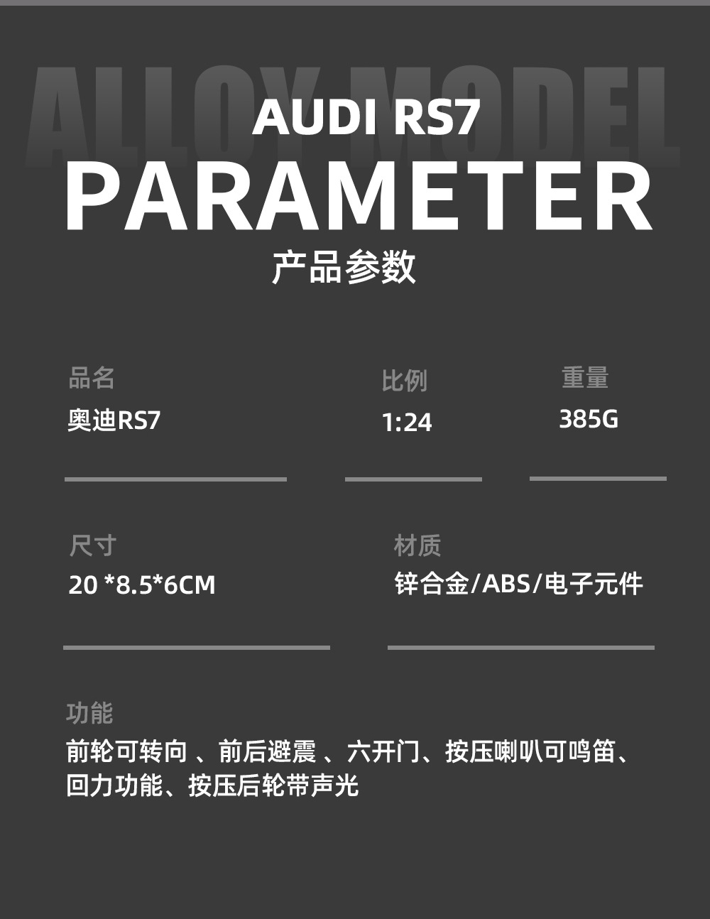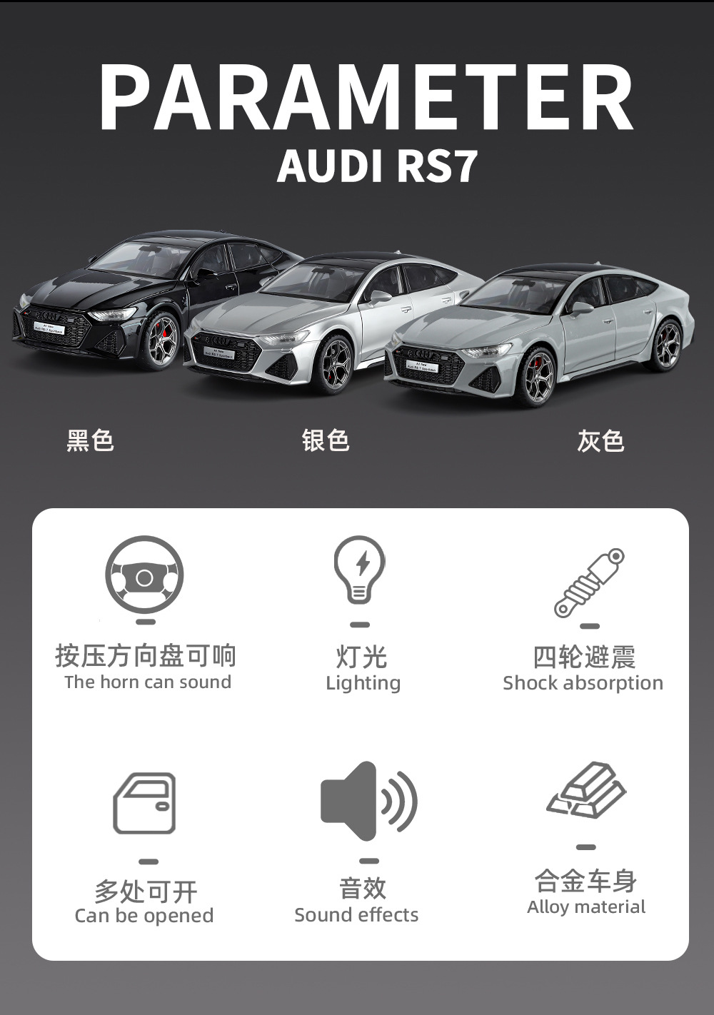 Zhiguan 1:24 스티어링 Acousto-optic Power Simulation Alloy Car와 함께 정품 공인 Audi RS7 Sportback