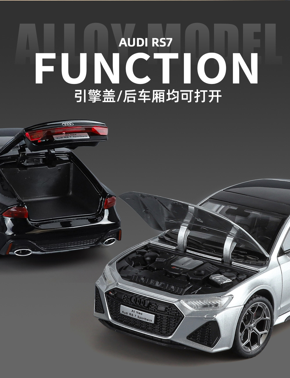 Zhiguan 1:24 스티어링 Acousto-optic Power Simulation Alloy Car와 함께 정품 공인 Audi RS7 Sportback스토어 가기