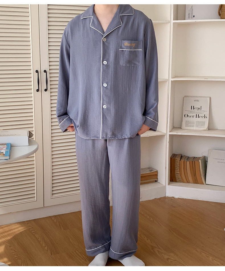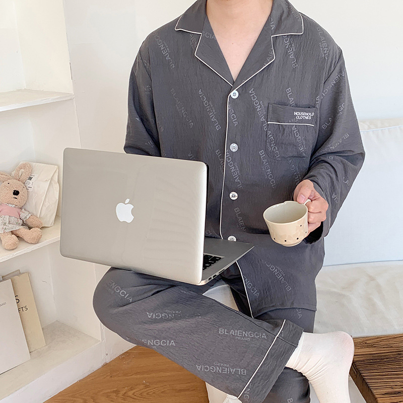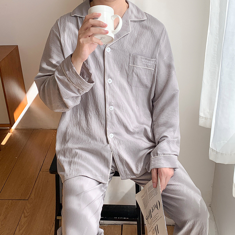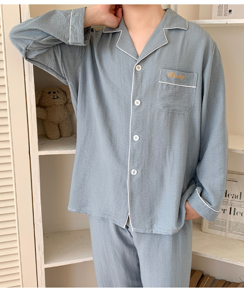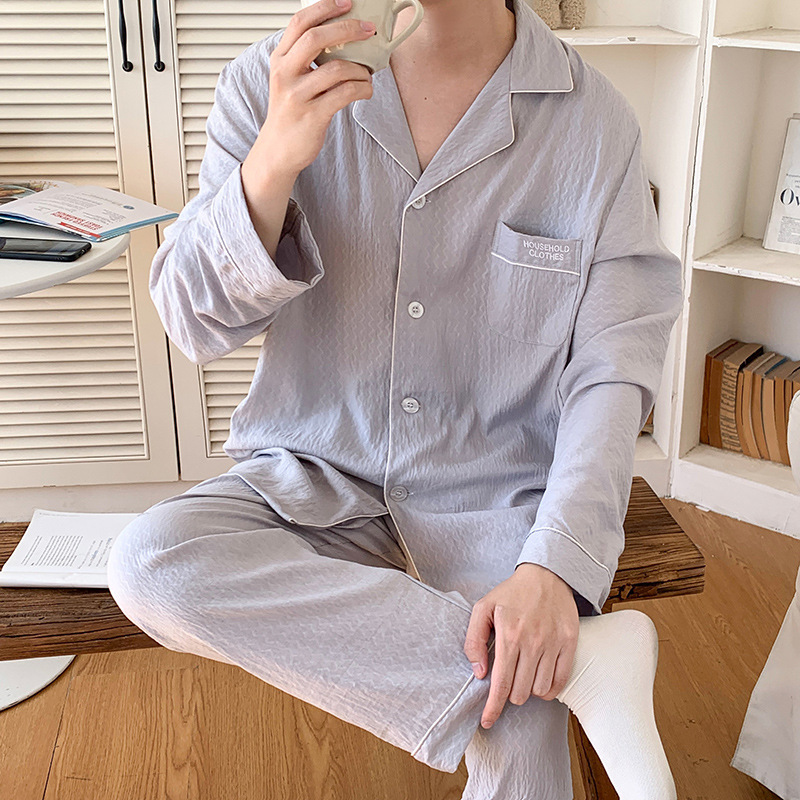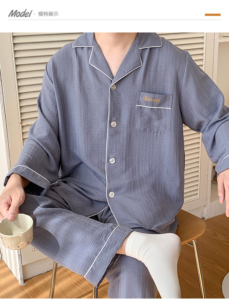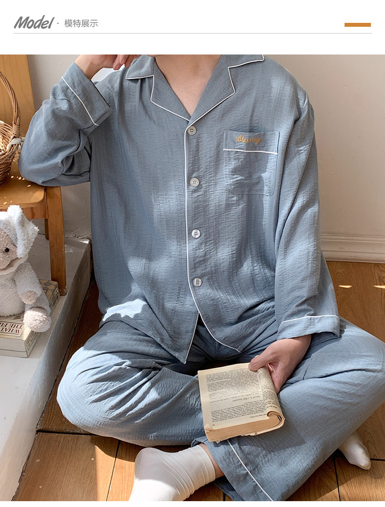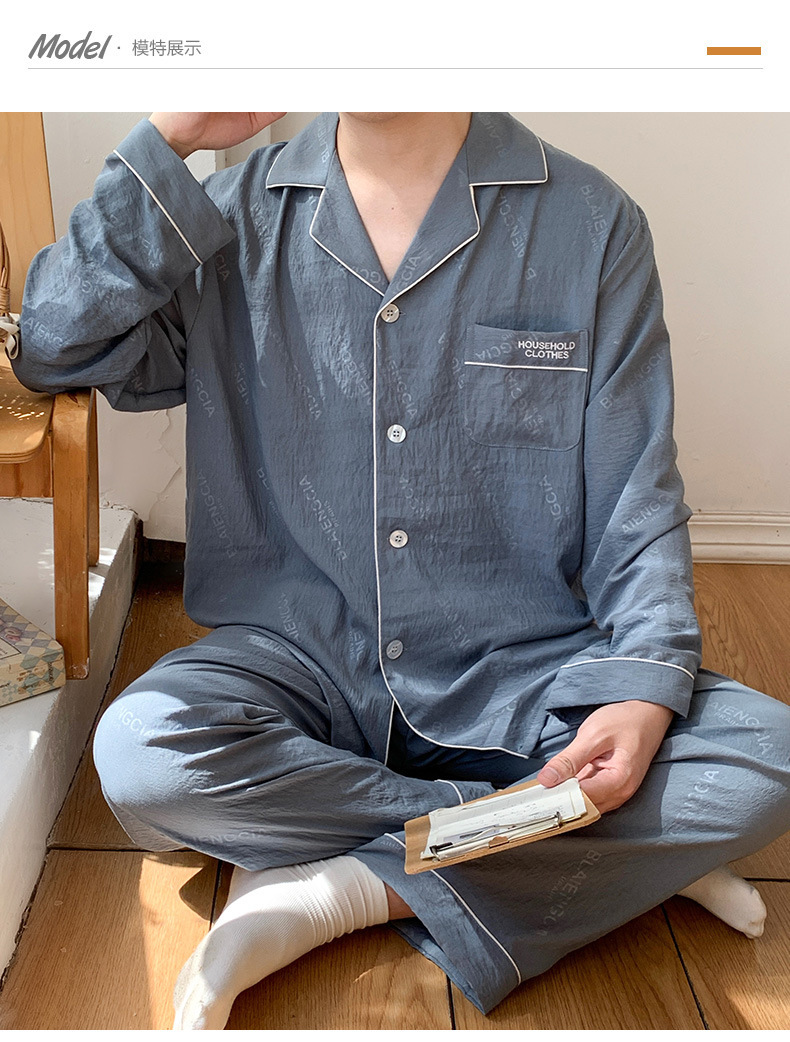 남자 잠옷 2025 새로운 구름 순면 봄 가을 긴 소매 세트 가을 겨울 남자 청소년 홈 옷스토어 가기