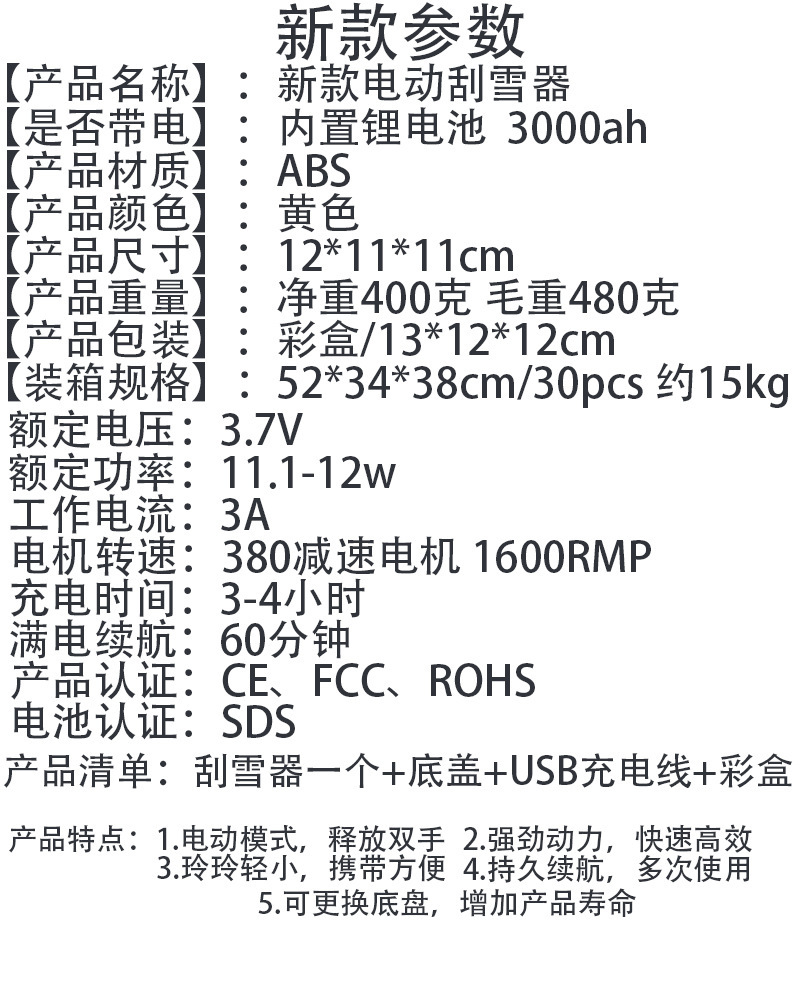 국경 간 폭발 자동차 제설 장치 전기 스노우 스크레이퍼 USB 충전 자동차 유리 제빙 및 제상 청소 도구스토어 가기