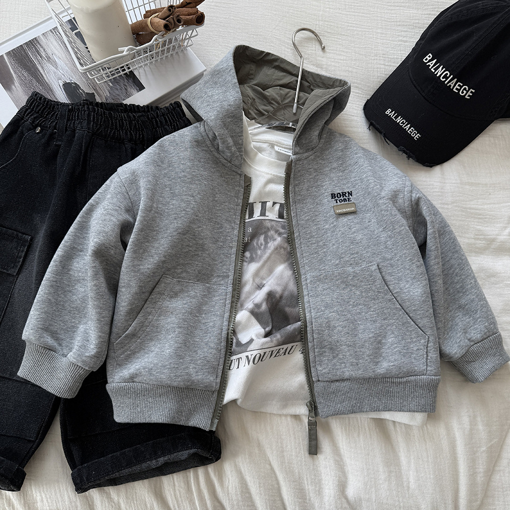소년 '후드코트 봄 2025 신작 한국식 스포츠 캐주얼 스웨터 카디건 보이즈의 서양식 탑코트스토어 가기