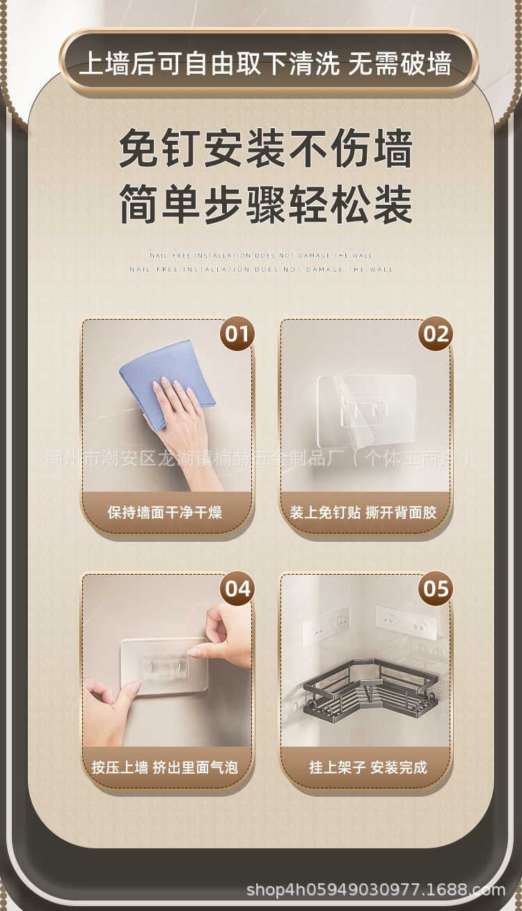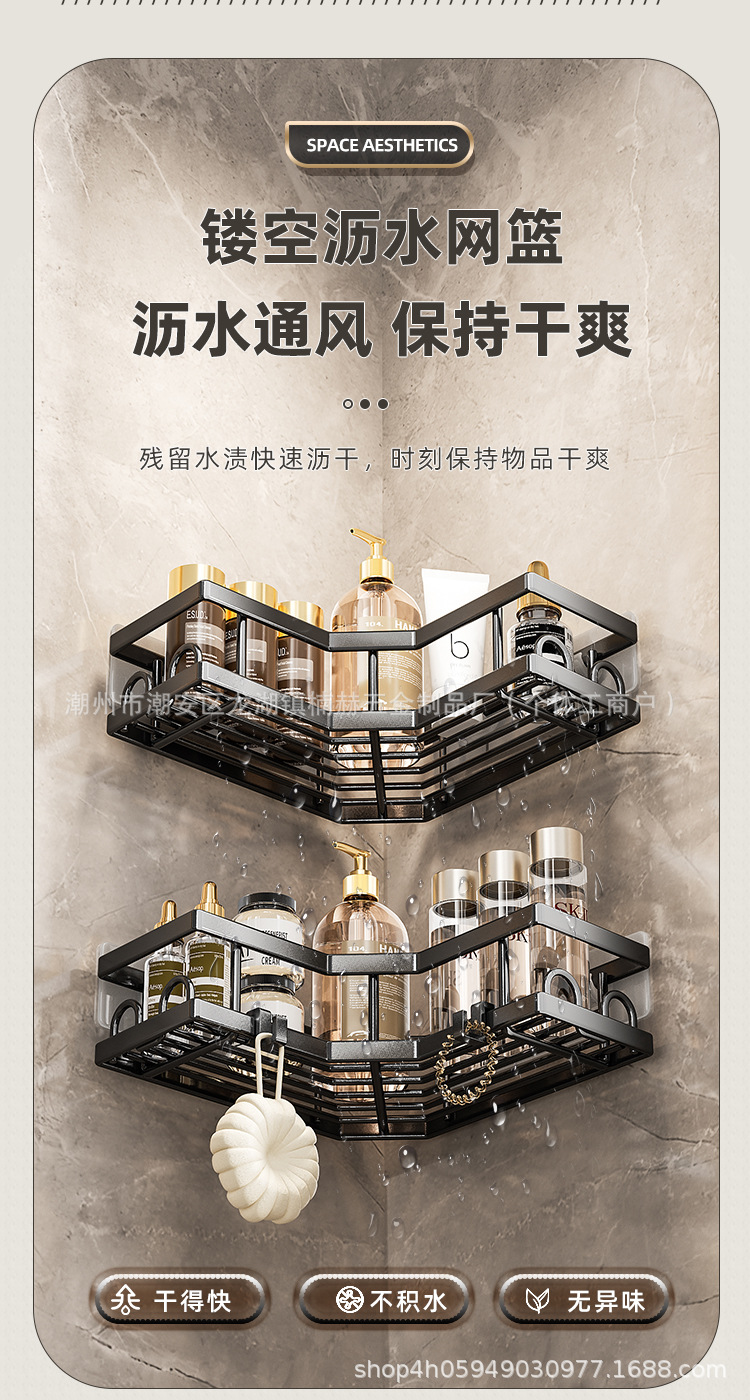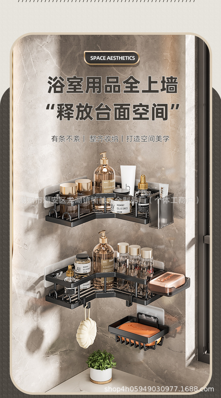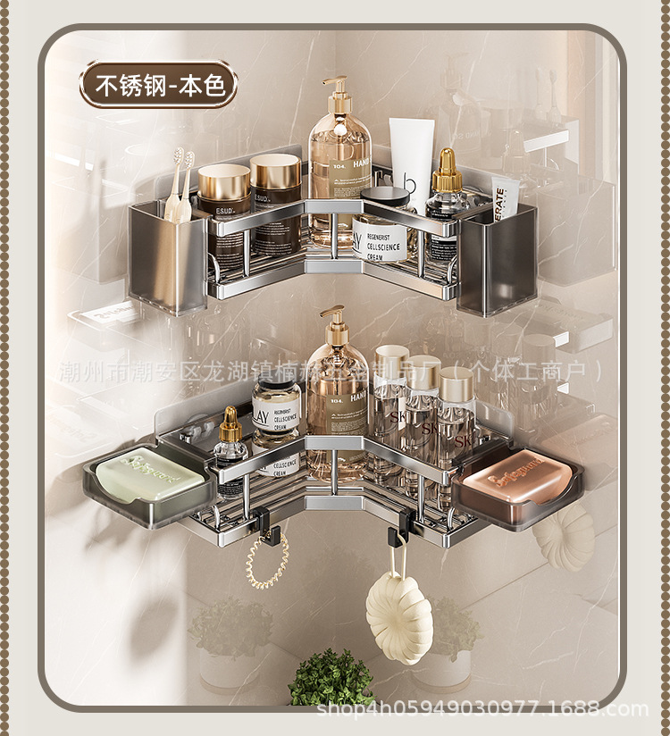 크로스보더 욕실 수납 선반 철제 삼각대 무타공 화장실 수납 선반 스테인리스 선반스토어 가기