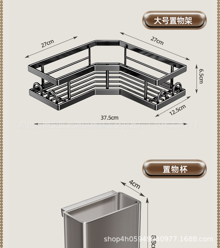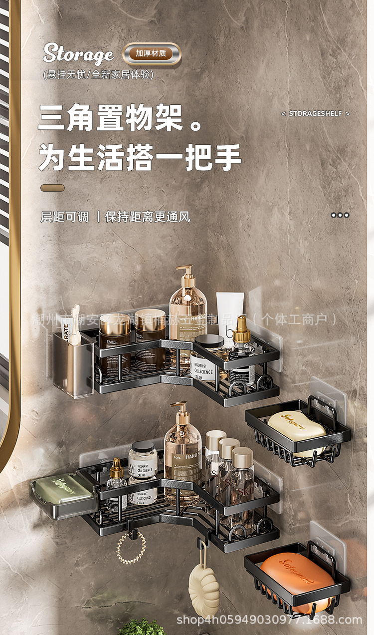 크로스보더 욕실 수납 선반 철제 삼각대 무타공 화장실 수납 선반 스테인리스 선반