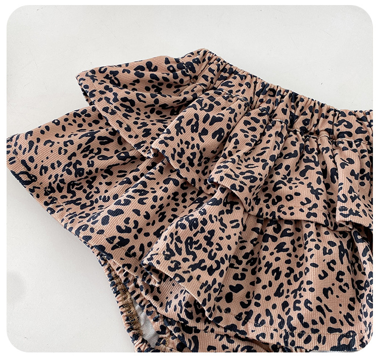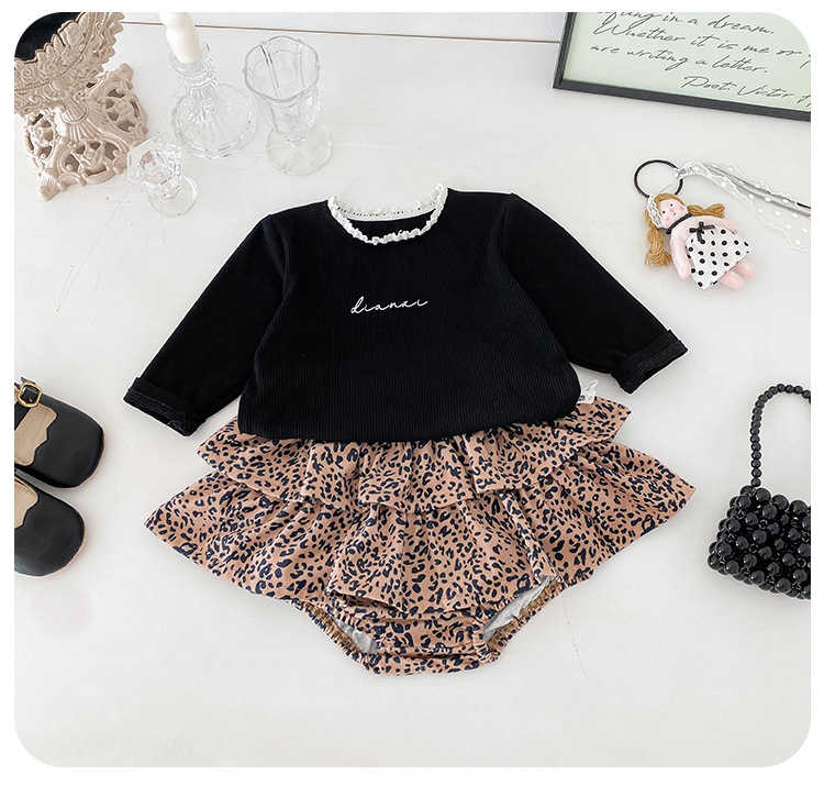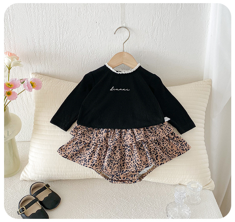 봄 아기 옷, 여자 아기 티셔츠, 짧은 치마 투피스 세트, 여자 한국 스타일 서양식 표범 무늬 봄 옷