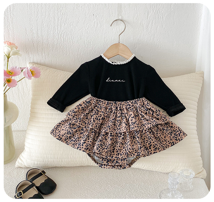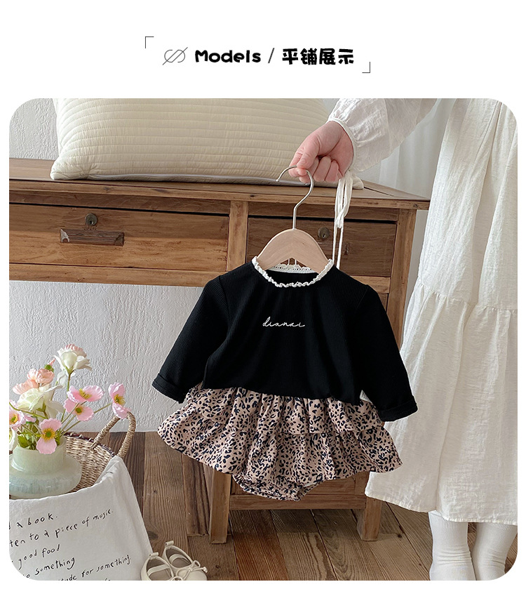 봄 아기 옷, 여자 아기 티셔츠, 짧은 치마 투피스 세트, 여자 한국 스타일 서양식 표범 무늬 봄 옷스토어 가기