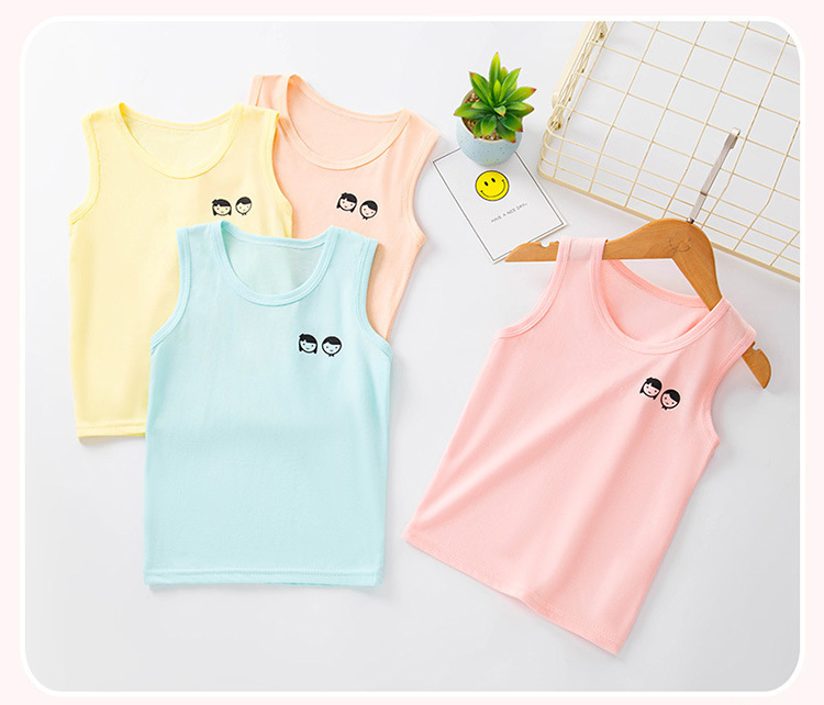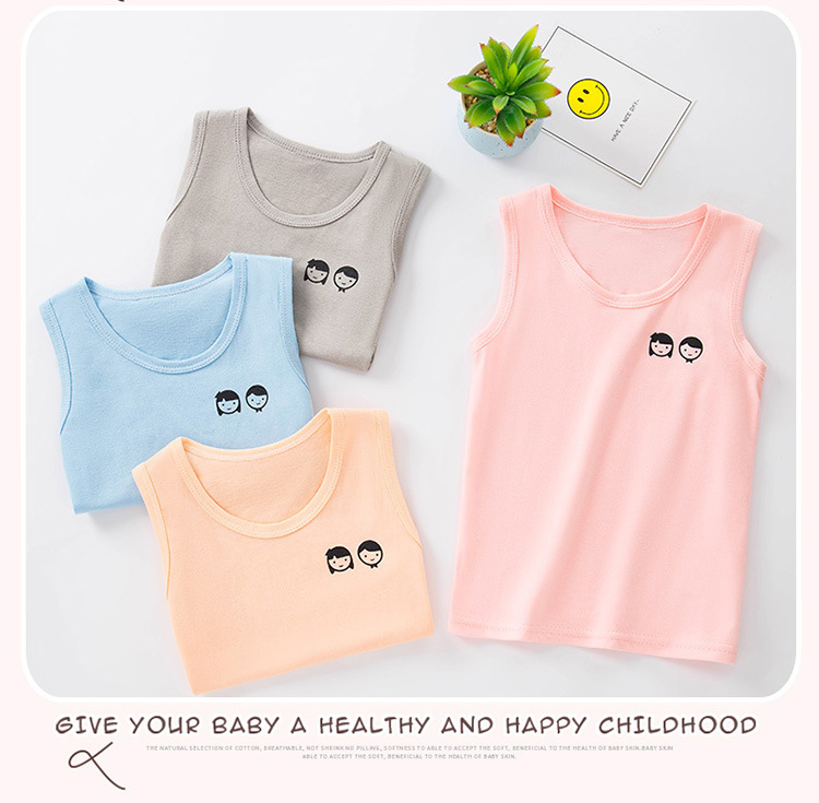 새로운 면 어린이 조끼 솔리드 컬러 실 소년 여름 얇은 아기 슬링 I 모양의 조끼 외부 착용베이스스토어 가기