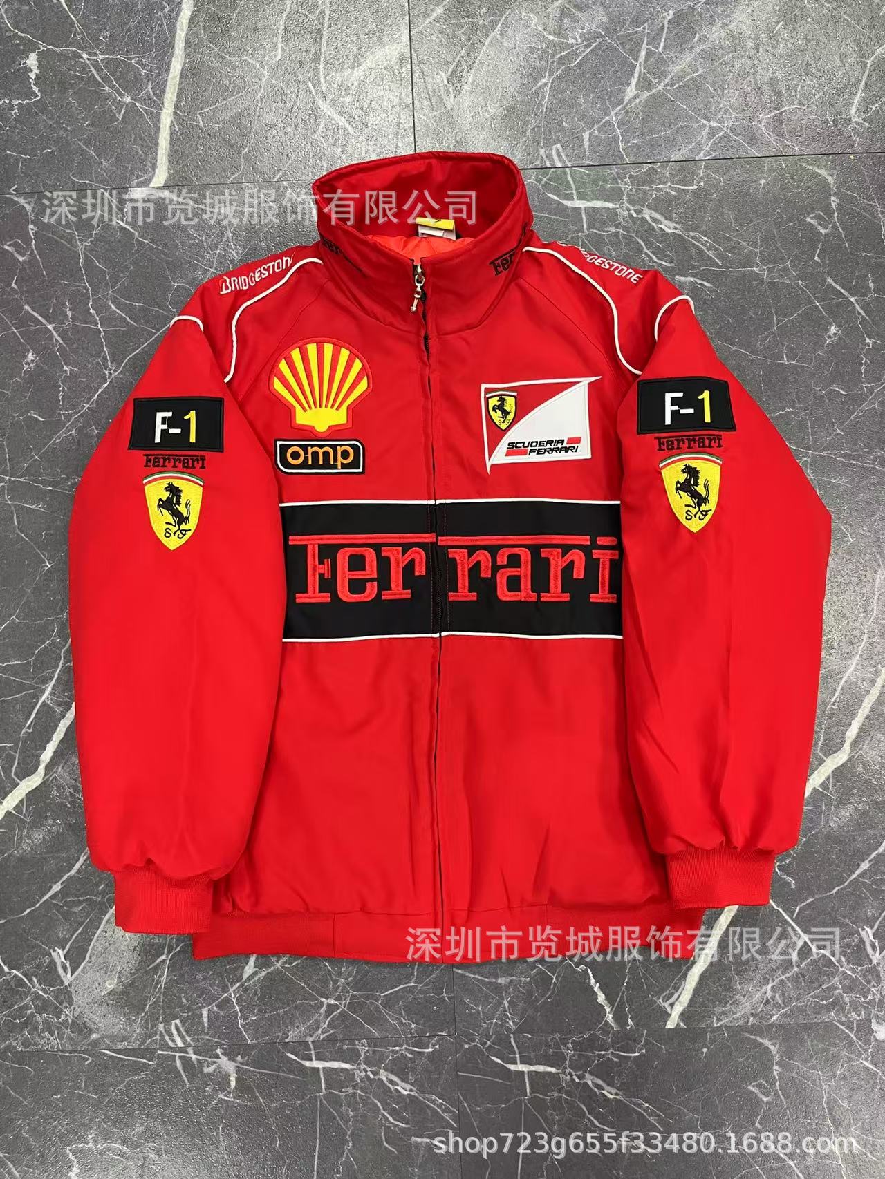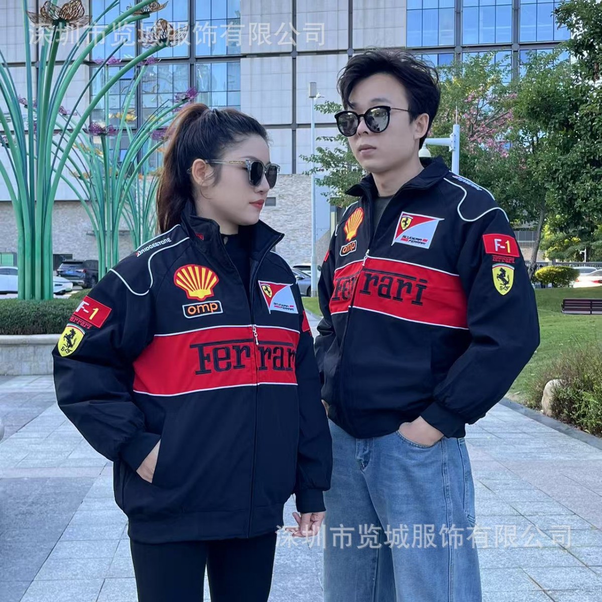 F1 자수 레이싱 세트 미국 패션 쿨 힙합 크로스 국경 페라리 재킷 코트 야구 비행 세트 캐주얼 패션스토어 가기