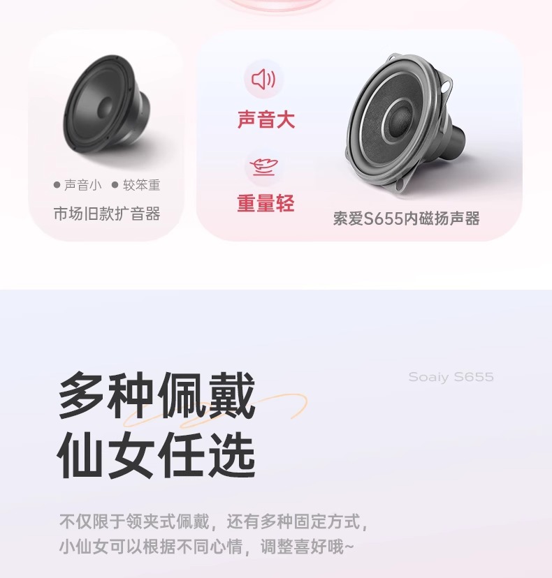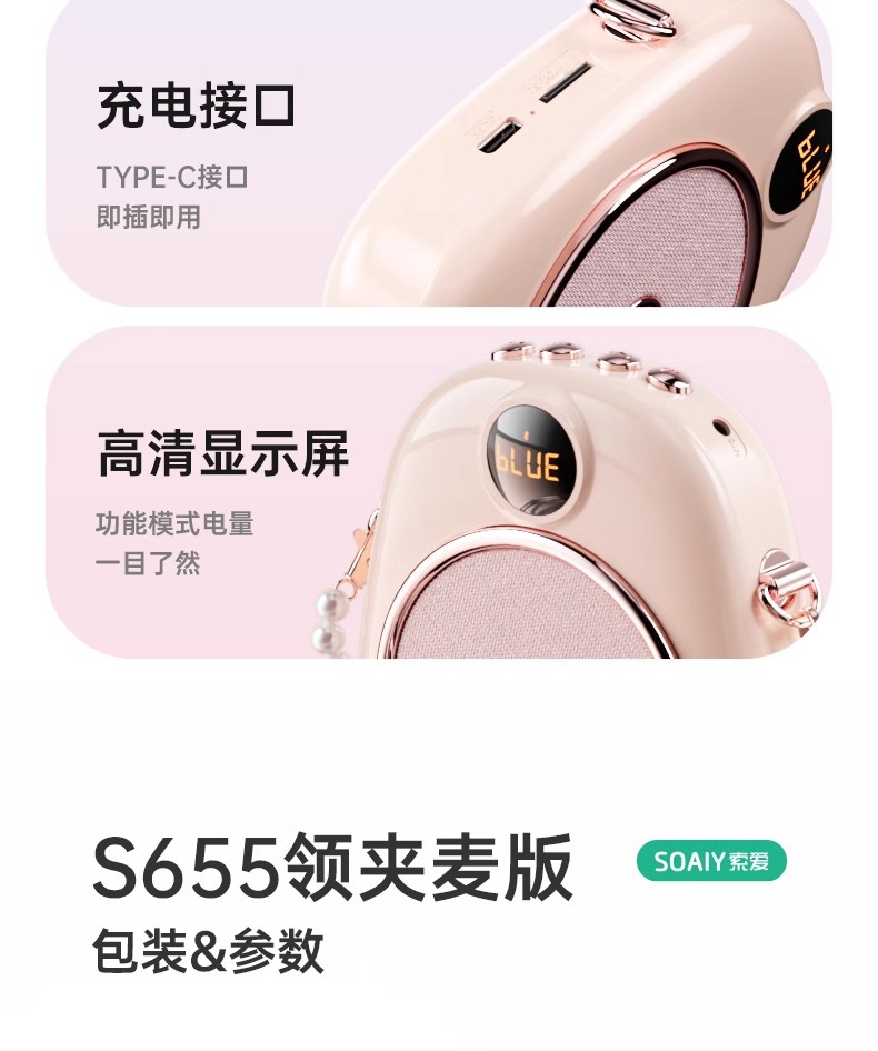 Sony Ericsson S655 무선 라펠형 소형 증폭기, 교사 강의용, 자석 마이크, 투어 가이드용, 야외 스피커