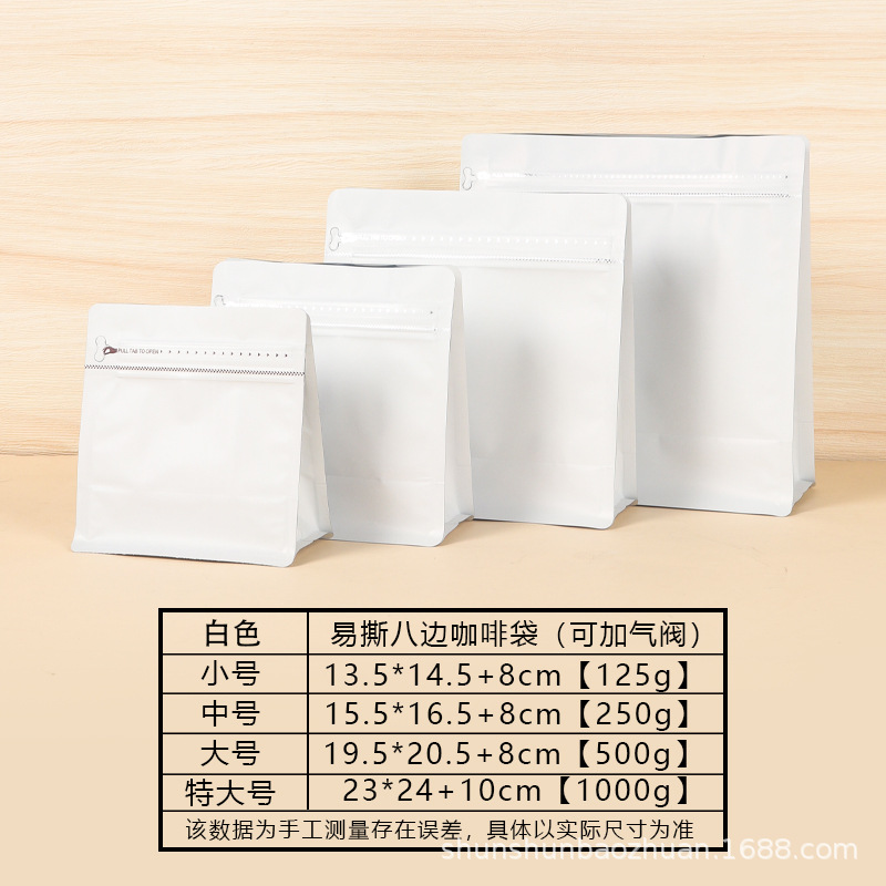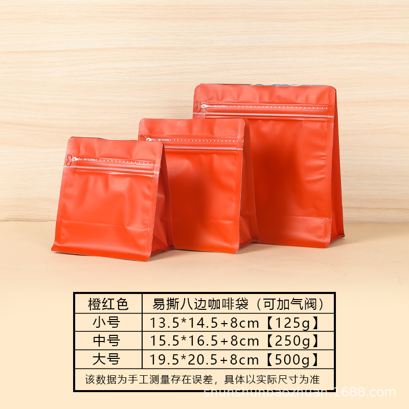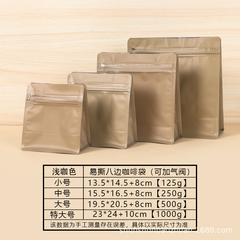 8면 밀봉 커피 백 식품 포장 백 맞춤형 알루미늄 호일 백 스낵 차 지퍼 백 커피 콩 포장 백