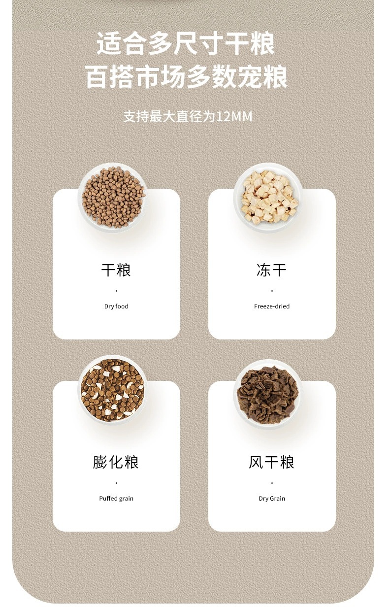 4、食物:干性食物,直径可接受为3-13mm,每份重量7±2g